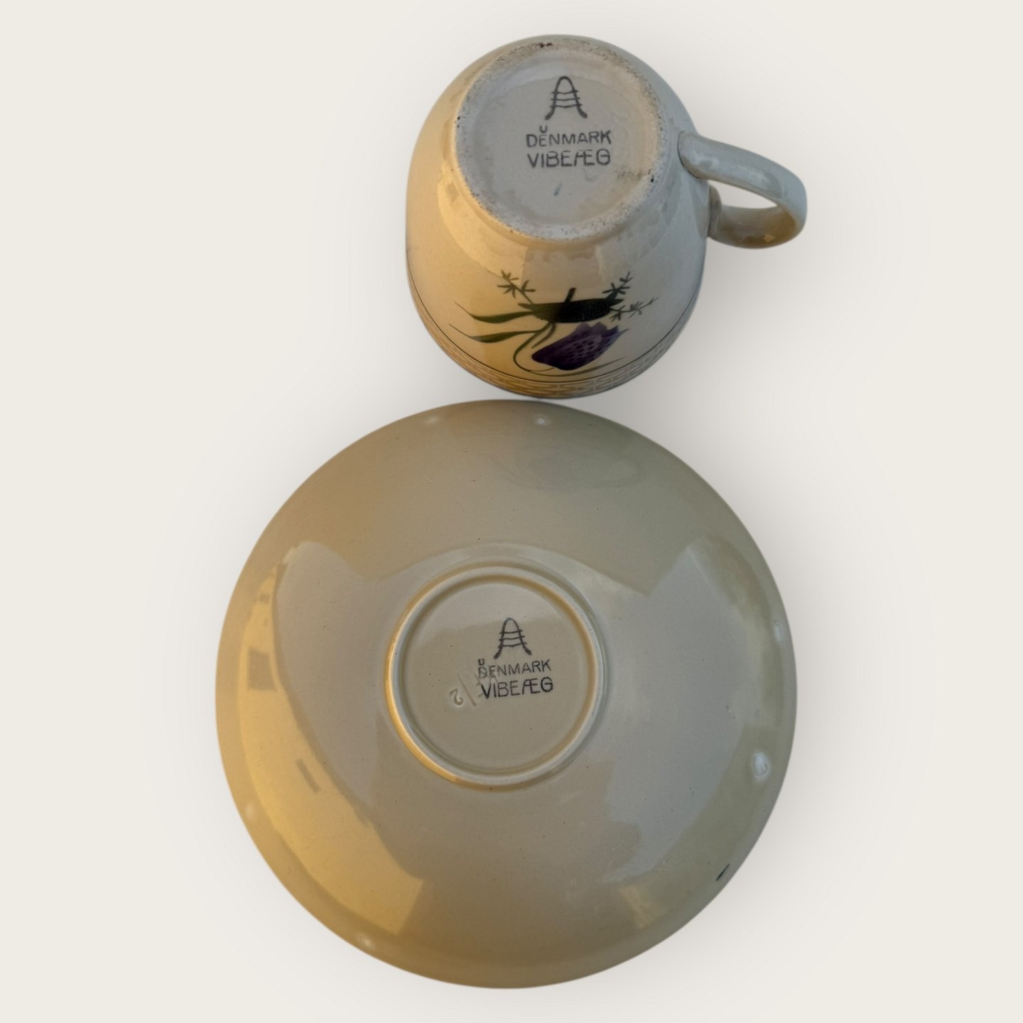 Royal Copenhagen, Aluminia, Victoria II-Form, Vibe Egg, Fritillaria meleagris, Kaffeetasse, Tassendurchmesser 7,5 cm, Höhe 6 cm, Untertassendurchmesser 13,5 cm *guter Zustand*