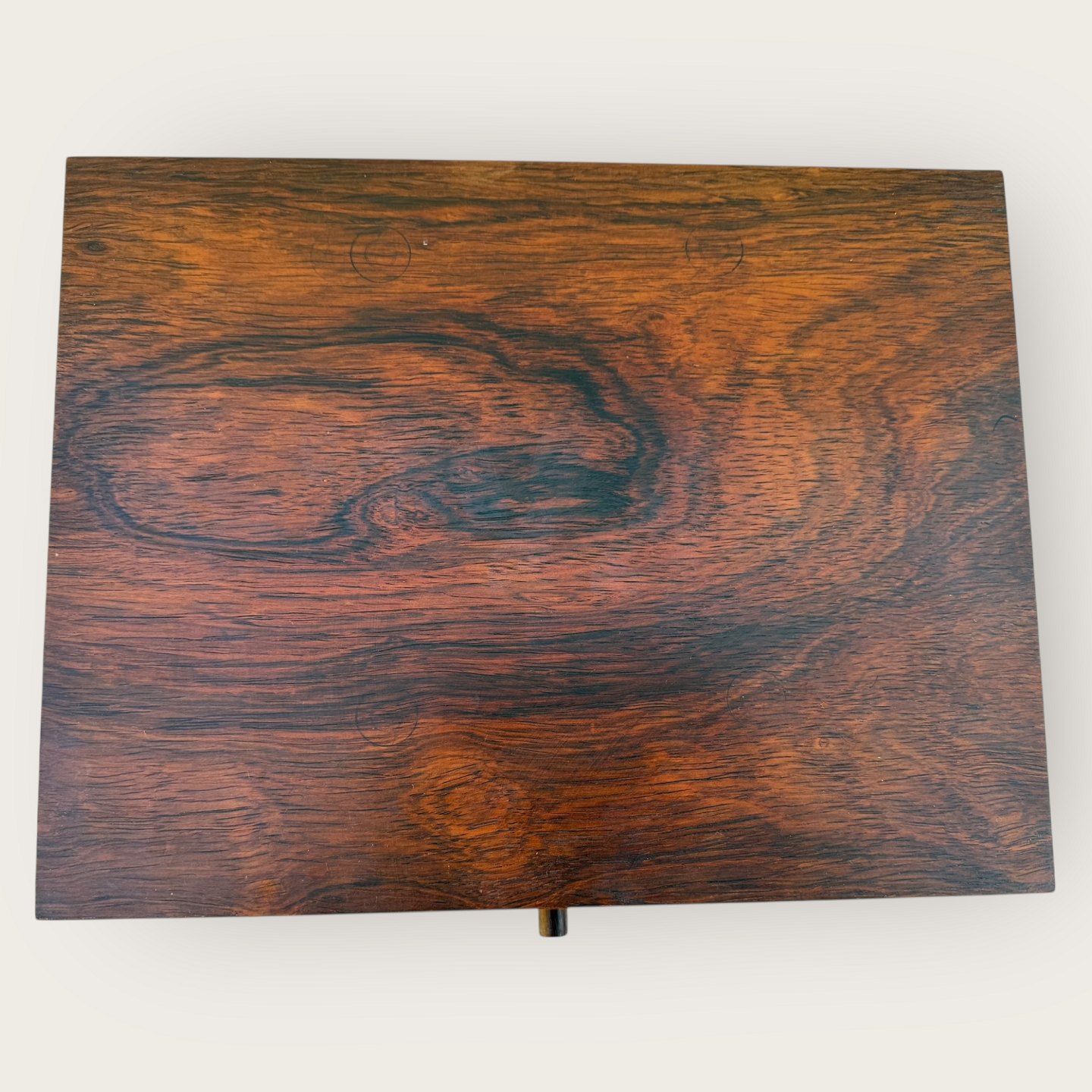 Kommode aus Palisanderholz mit 2 Schubladen, dänisches Design aus den 1960er Jahren, sehr guter Zustand mit wenigen Gebrauchsspuren, Maße: 32 x 25 x 12 cm