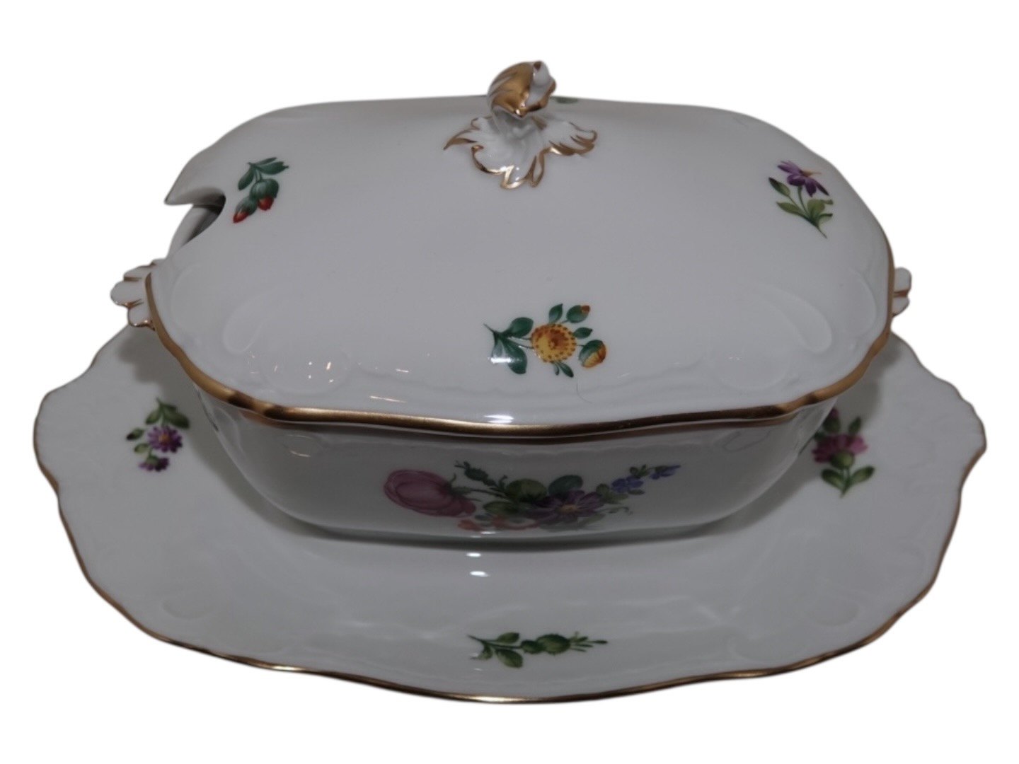Royal Copenhagen Let Saksisk Blomst, sjælden firkantet sovseskål med låg.
