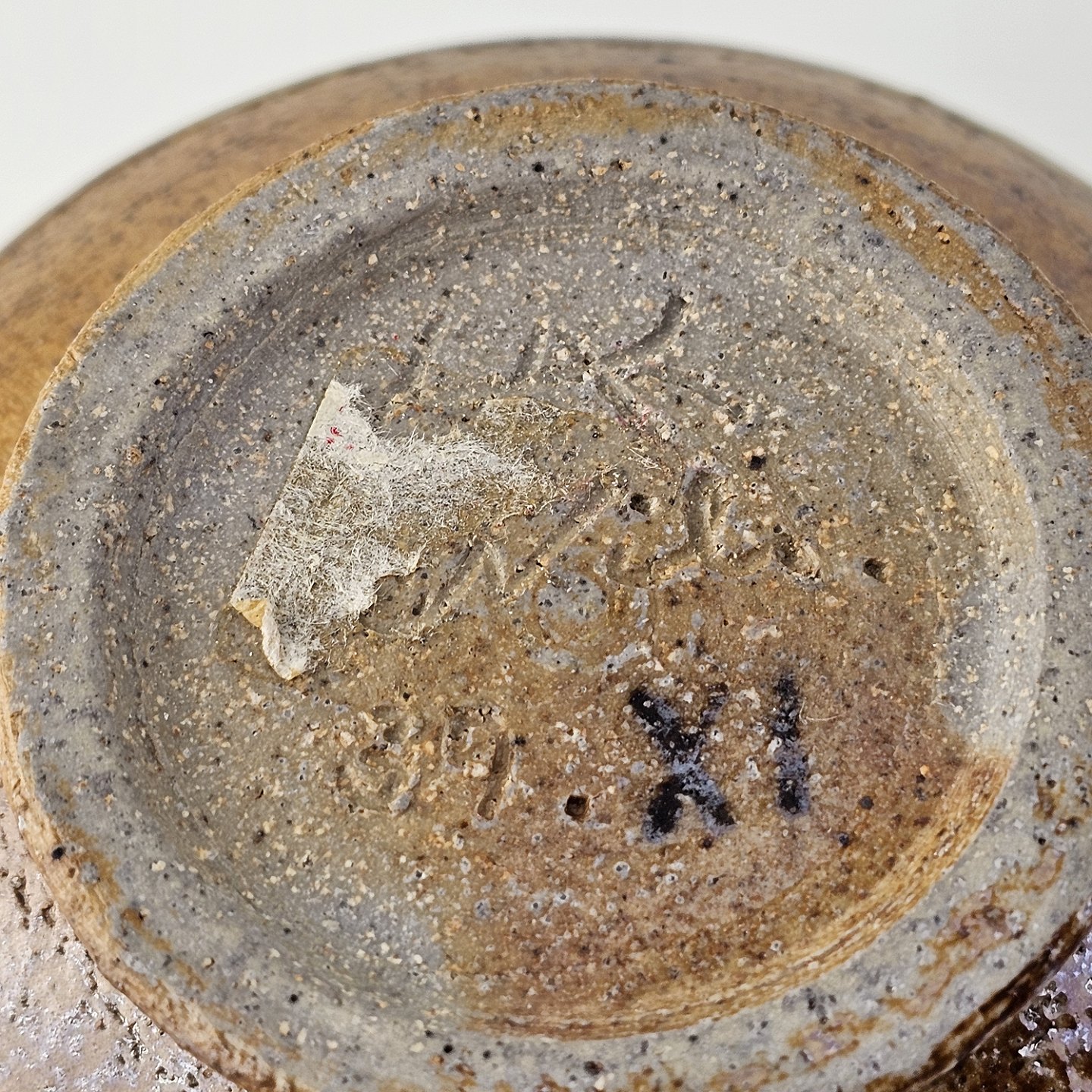 Vase smal fod og top i grålig/brunlig glasur