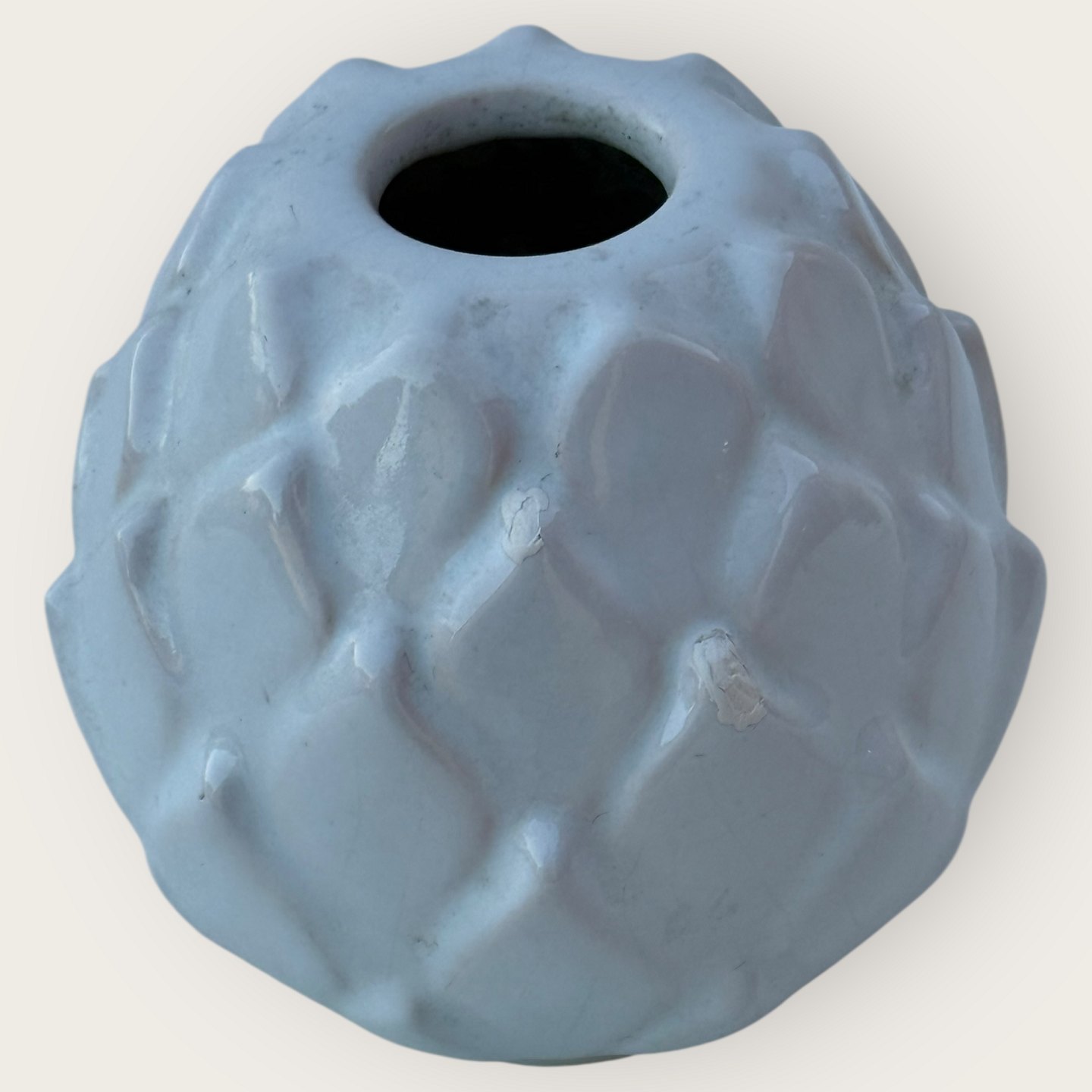 Bornholmer Keramik, Michael Andersen, weiße Keramikvase, Nr. 5103, ca. 8,5 cm hoch*Hat 2 kleine Absplitterungen/Reparaturen (siehe die letzten 2 Fotos)*
