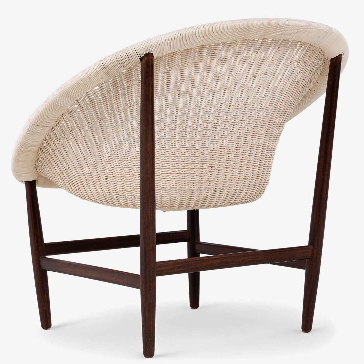 Sjælden 'Basket Chair'-lænestol i patineret palisander med sæde i nye peddigrør. Formgivet i 1950.