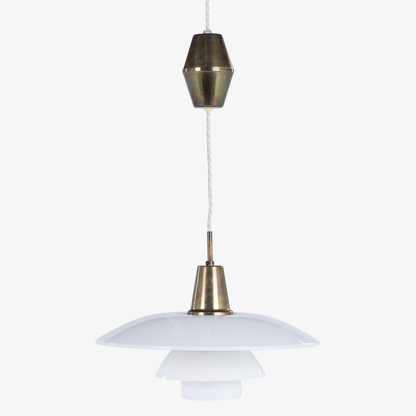 PH 4/3 - Pendel med hvide glasskærme og hejs i messing.