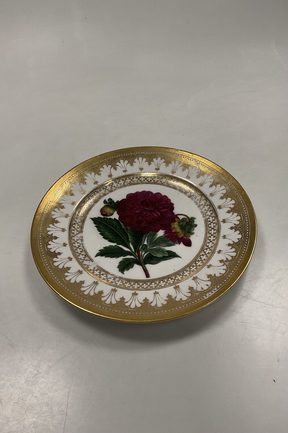 Royal Copenhagen Antik Tallerken med Blomster Motiv og guld. Signeret af Christian Klein fra 1820-1850