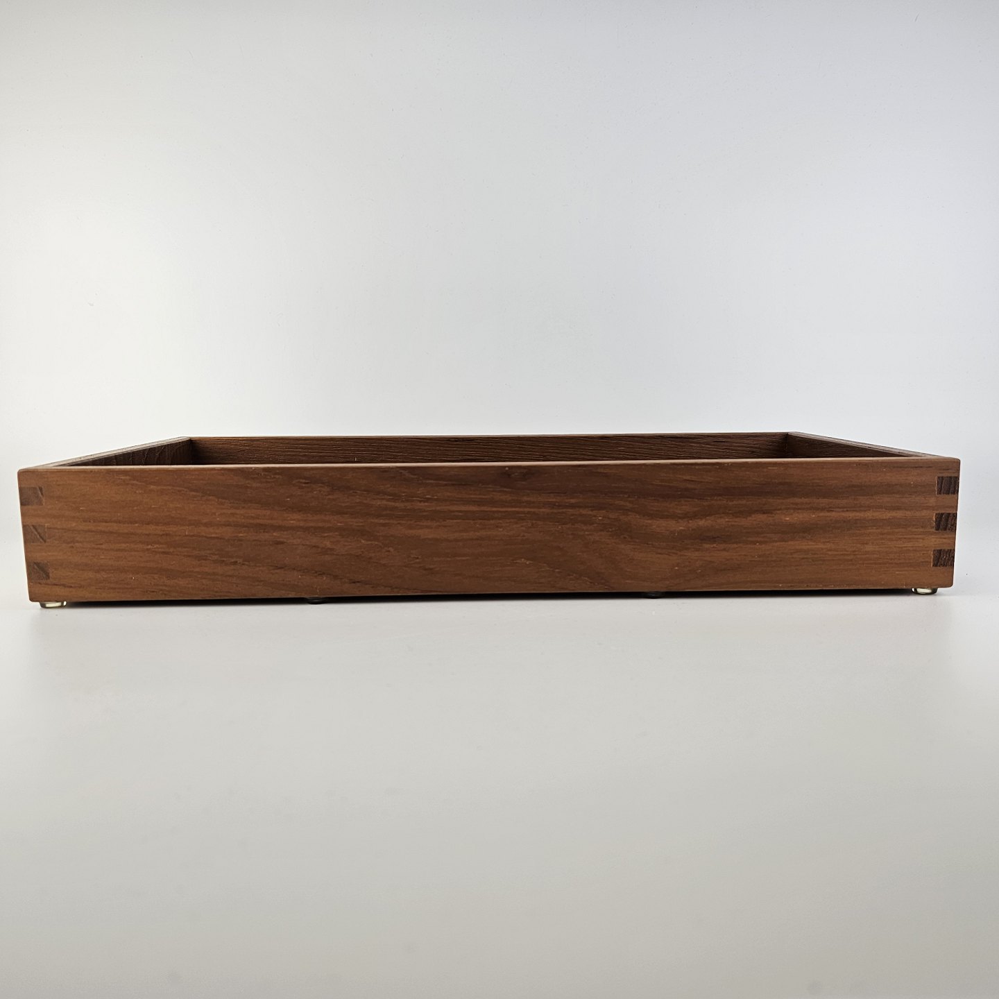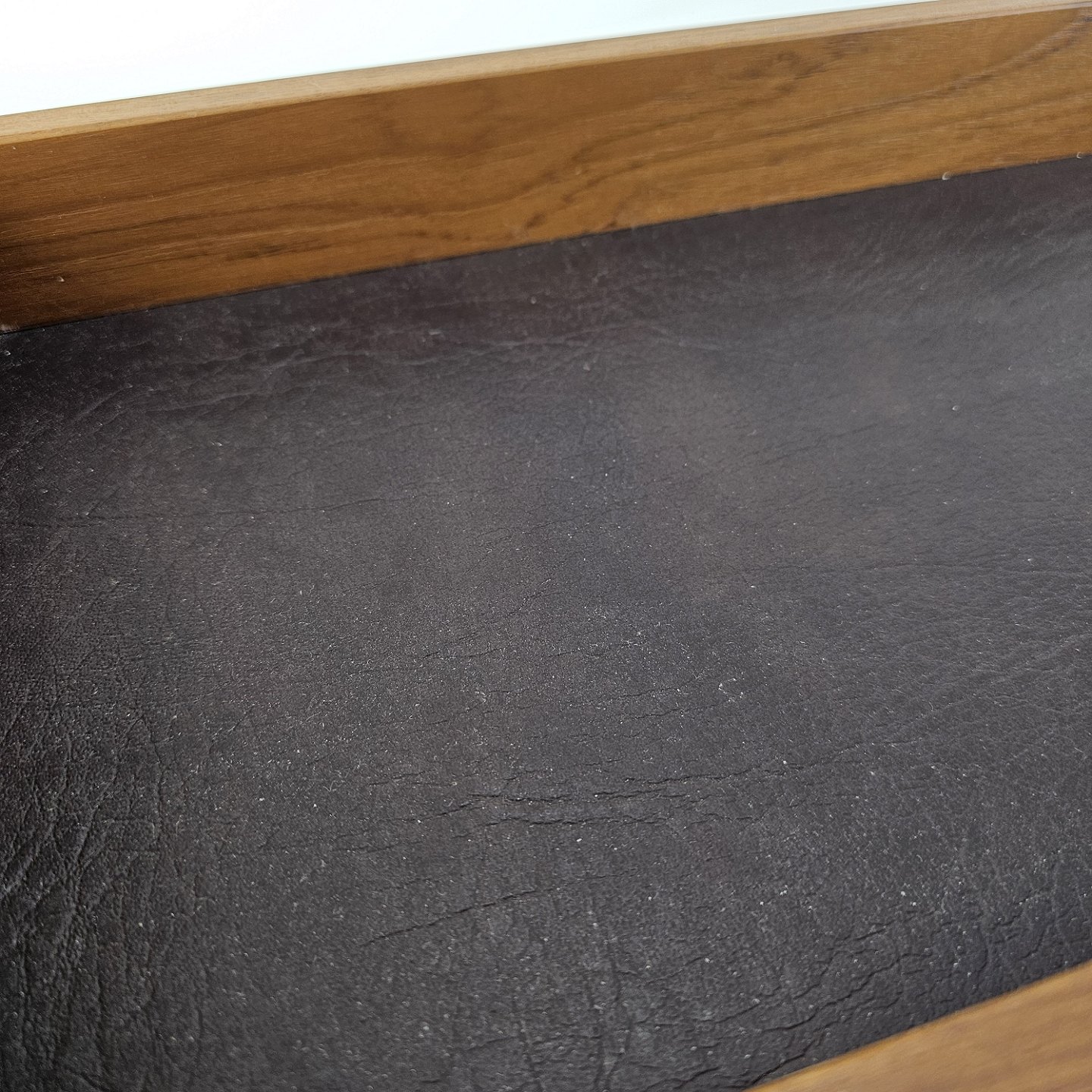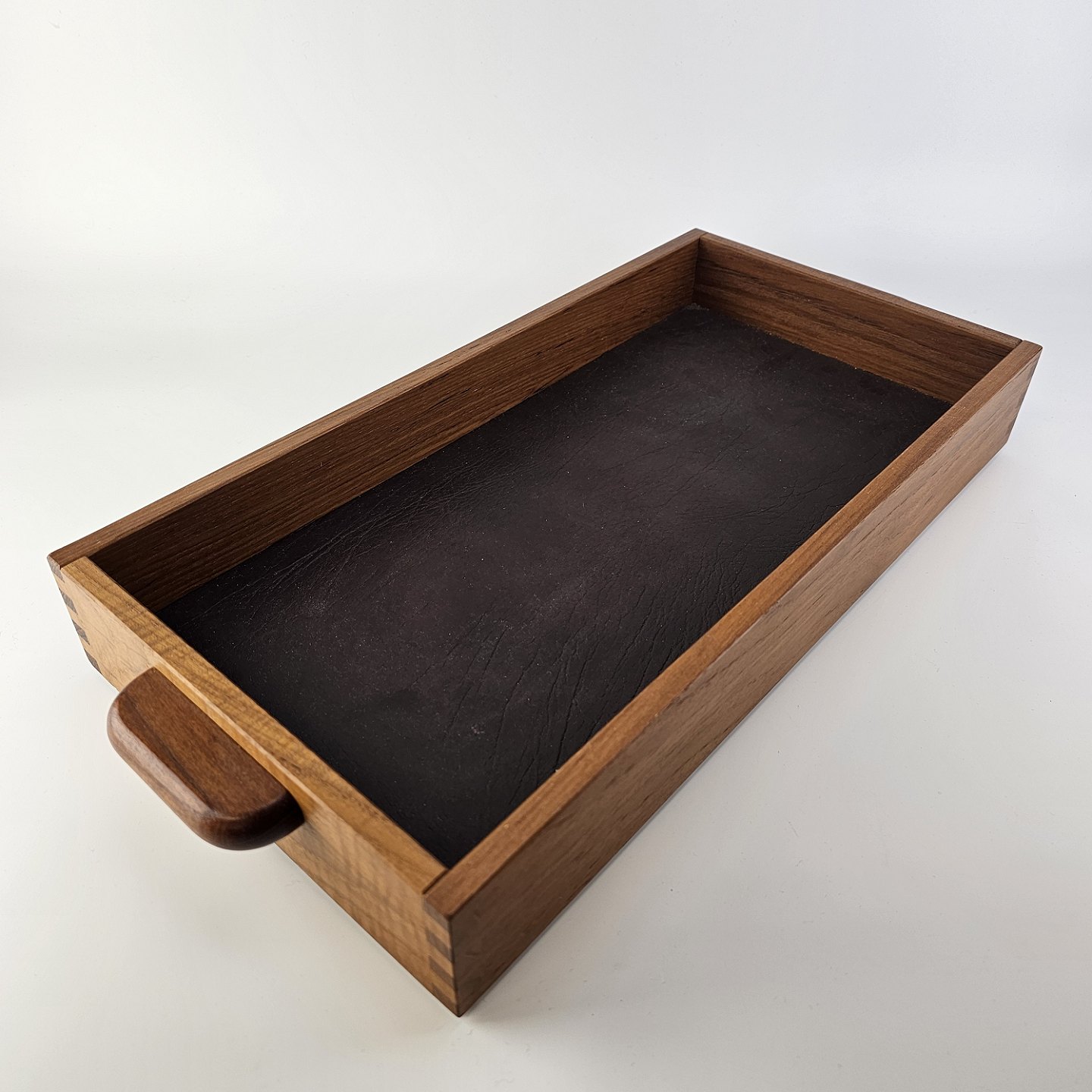 Bakke i teak træ med læder i bunden