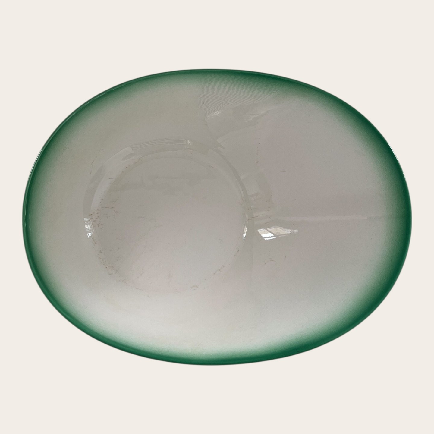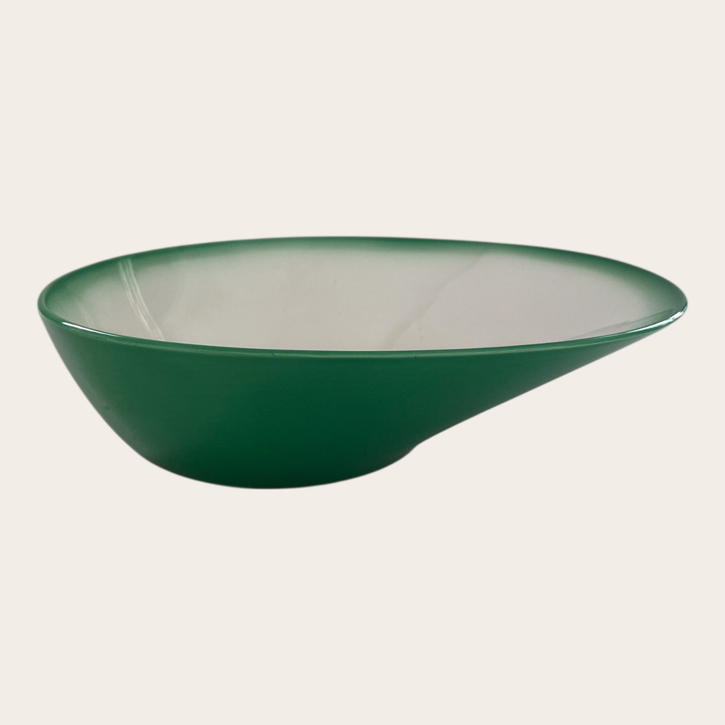 Royal Copenhagen, Aluminia, Ursula, Asymmetrische Schale, Grün/Weiß, 1. Wahl, 30,5 cm lang, 24 cm breit, 8 cm hoch, Design Ursula Munch Petersen *Mit Gebrauchsspuren*