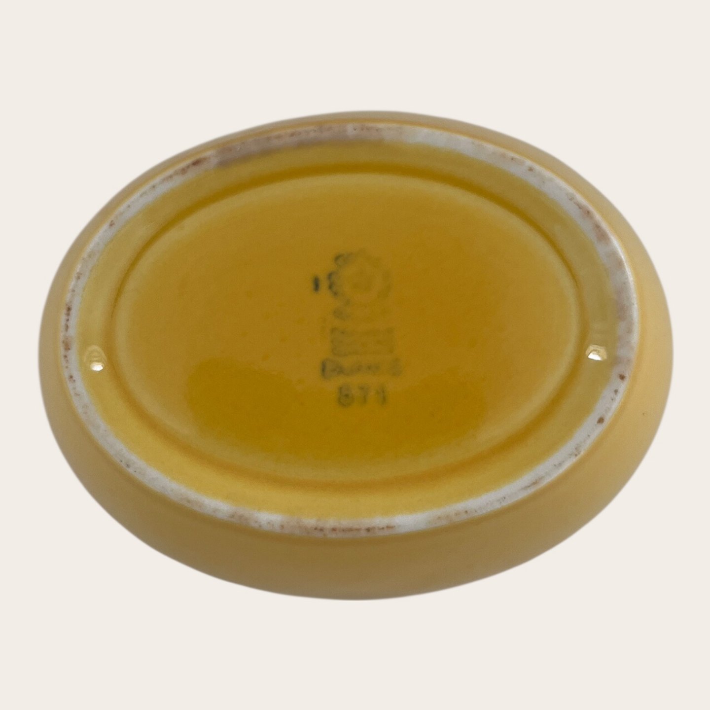 Royal Copenhagen, Aluminia, Ursula, Ovale Schale, Gelb Nr. 571, 1. Wahl, 10,5 cm lang, 8 cm breit, 6 cm hoch, Design Ursula Munch Petersen *Guter Zustand*