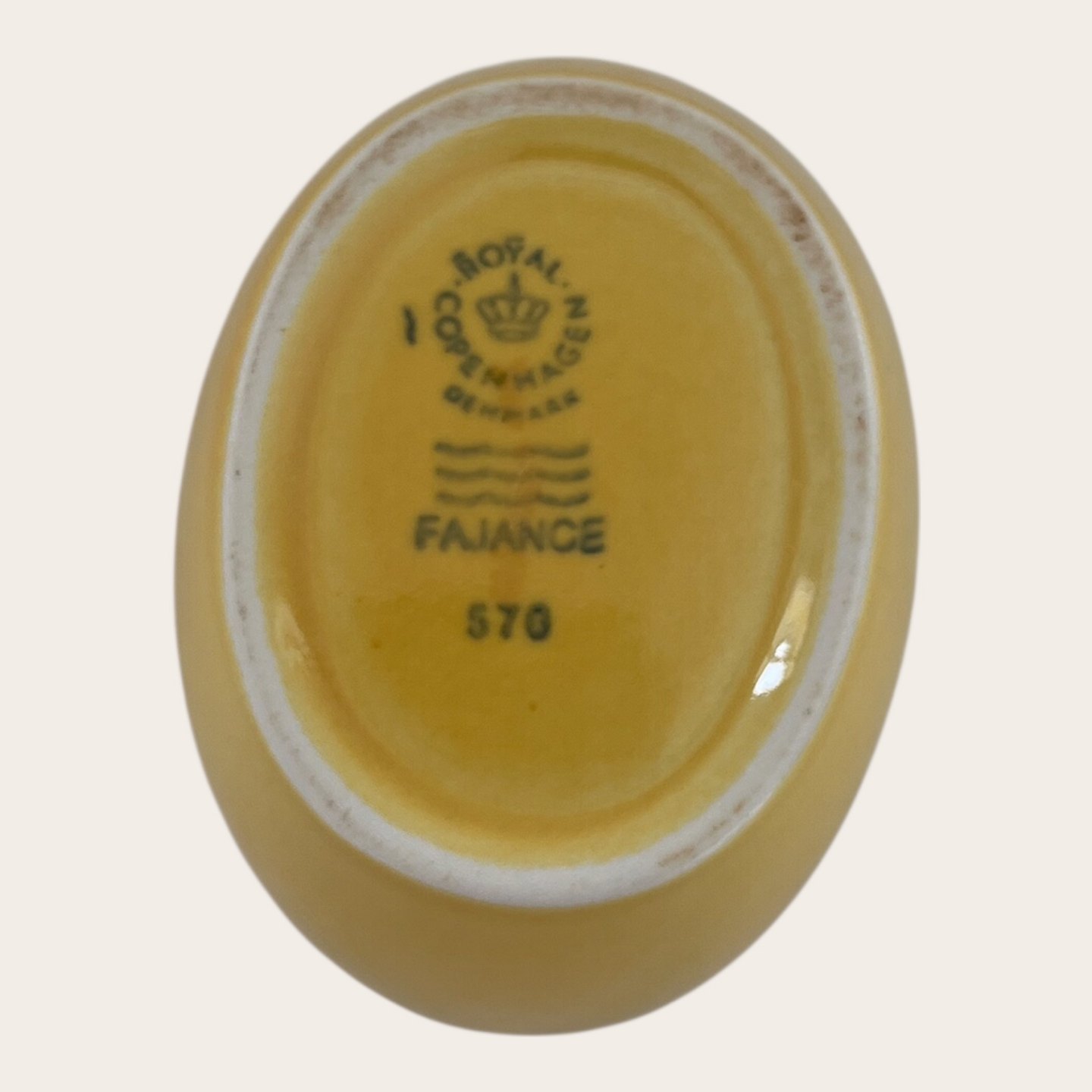 Royal Copenhagen, Aluminia, Ursula, Ovale Schale Nr. 570, Gelb, 8,5 cm lang, 6,5 cm breit, 5 cm hoch, Design Ursula Munch Petersen, 2. Wahl *Guter Zustand*