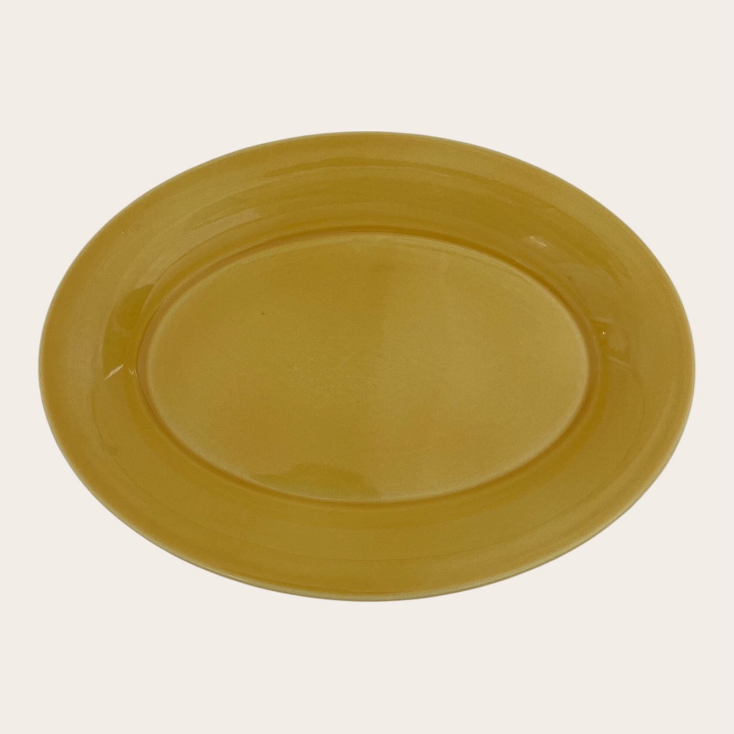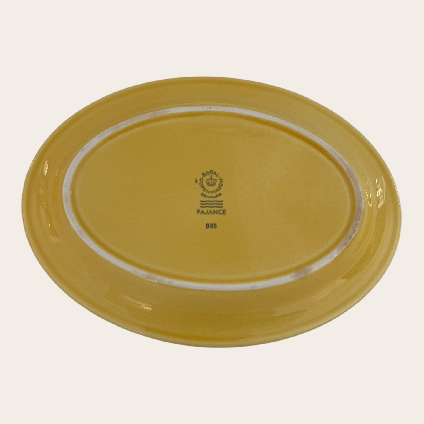 | Royal Copenhagen, Aluminia, Ursula, Teller, Gelb Nr. 085, 1. Sortierung, 22 cm lang, 16 cm breit, Design Ursula Munch Petersen *Guter Zustand*