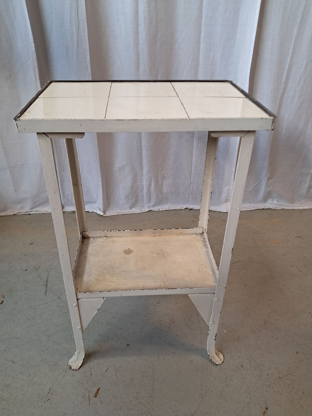 Lille gasbord i malet metal med fliser, fra 1930erne.