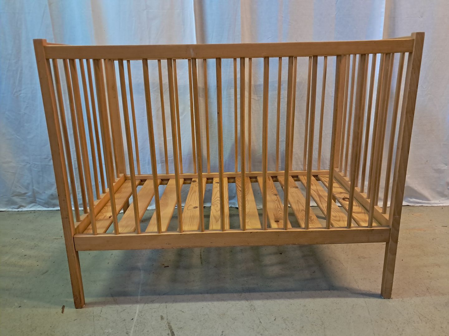 Barneseng i massivt bøgetræ, fra 1970erne.