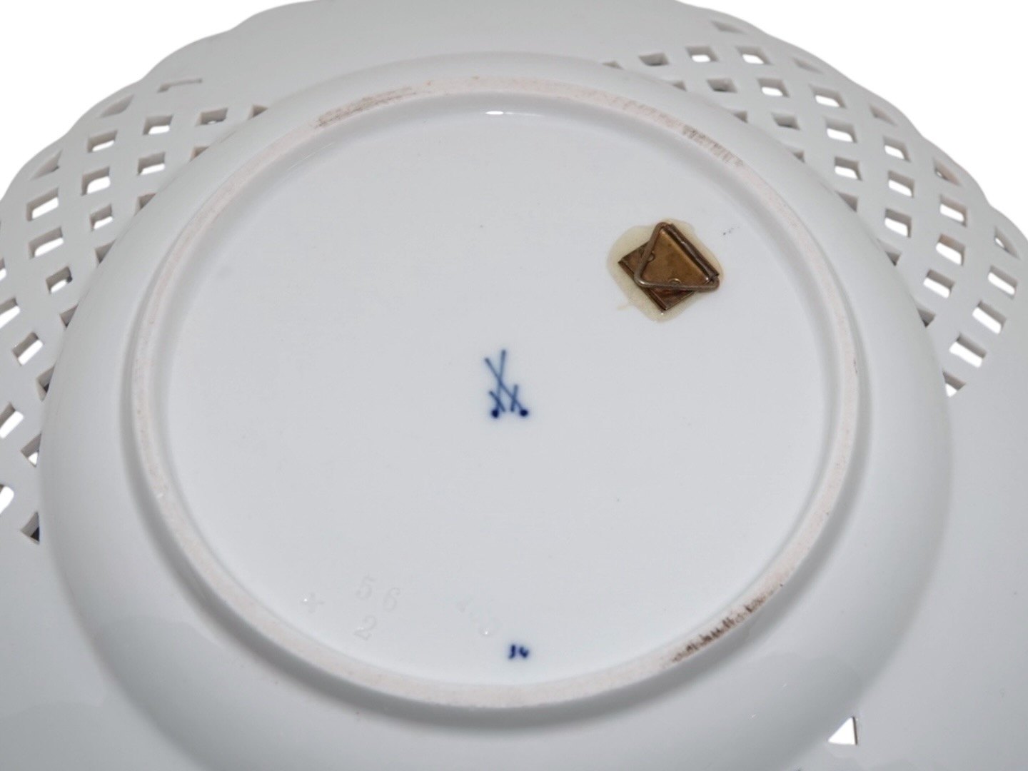 Meissen Tyskland, Blue Onion tallerken med dobbeltblonde og guldkant.