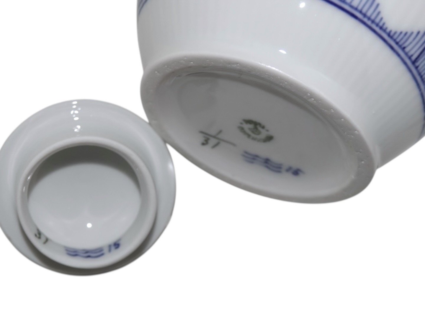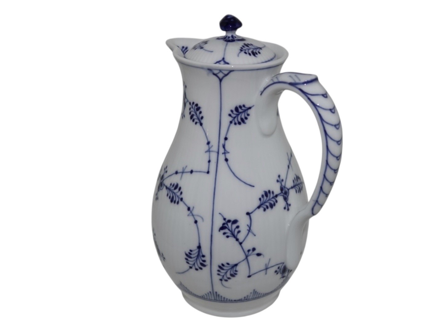 Royal Copenhagen Musselmalet Riflet, sjælden chokoladekande med tilhørende låg.