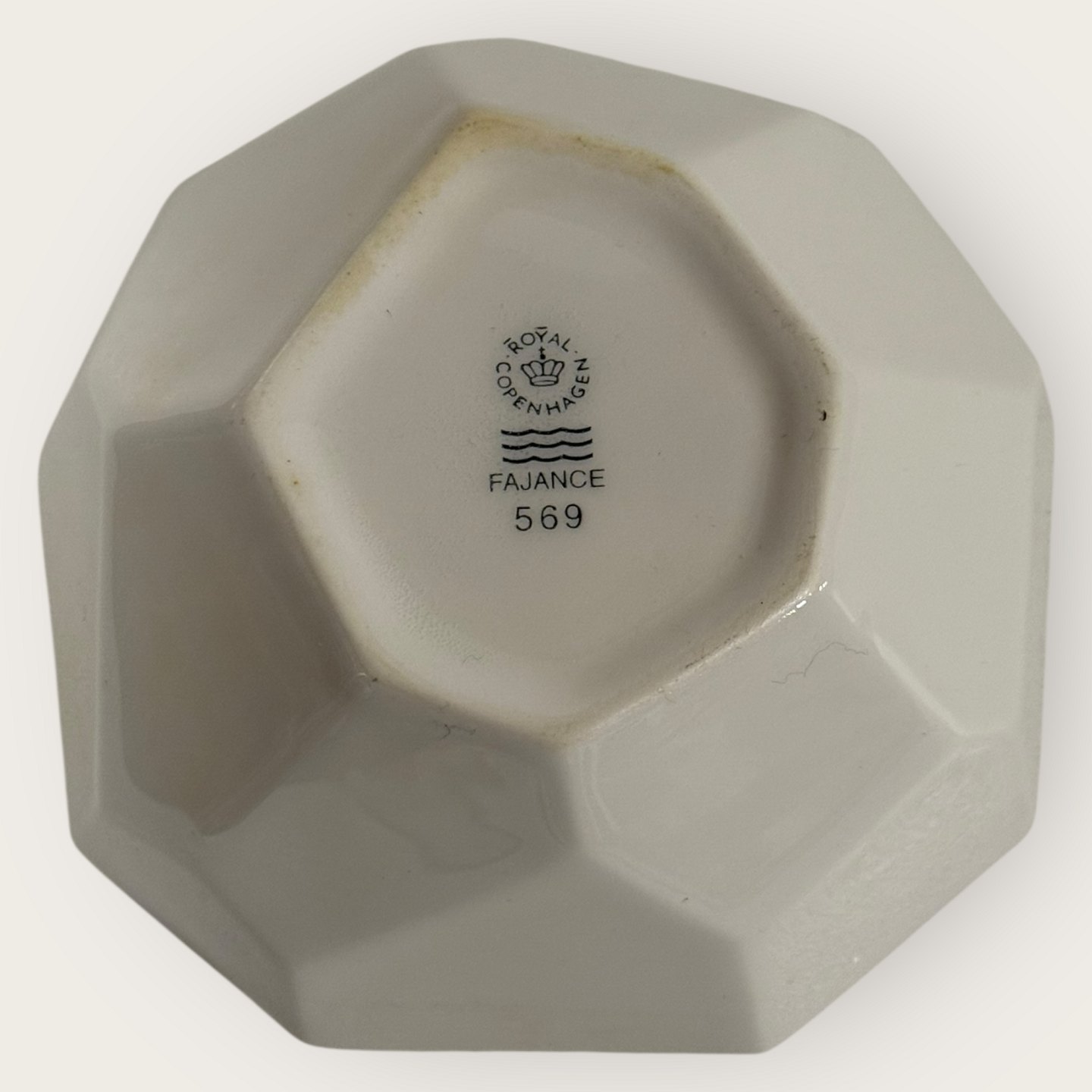 | Royal Copenhagen, Aluminia, Ursula-Fayence, neuneckige Schale Nr. 569, 1. Wahl, Höhe 5 cm, Breite 10 cm, Design Ursula Munch Petersen *Guter Zustand*