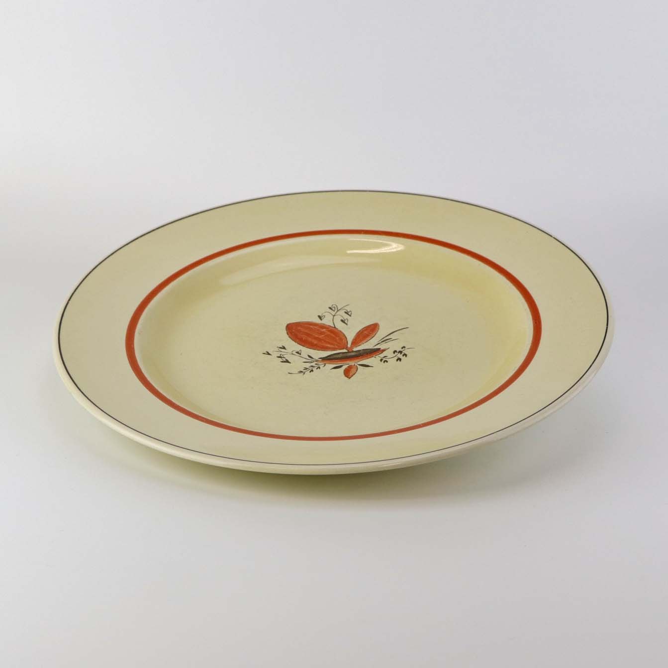 Fremstår med brugsspor på dekorationen og spor efter brug i bunden af tallerknen.