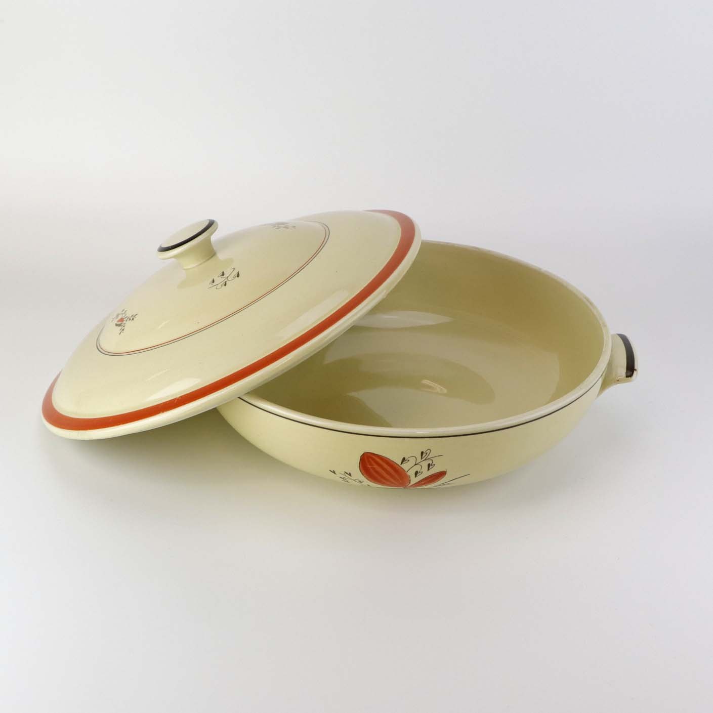Fremstår med lettere brugsspor på dekorationen samt langs terrinens kant.