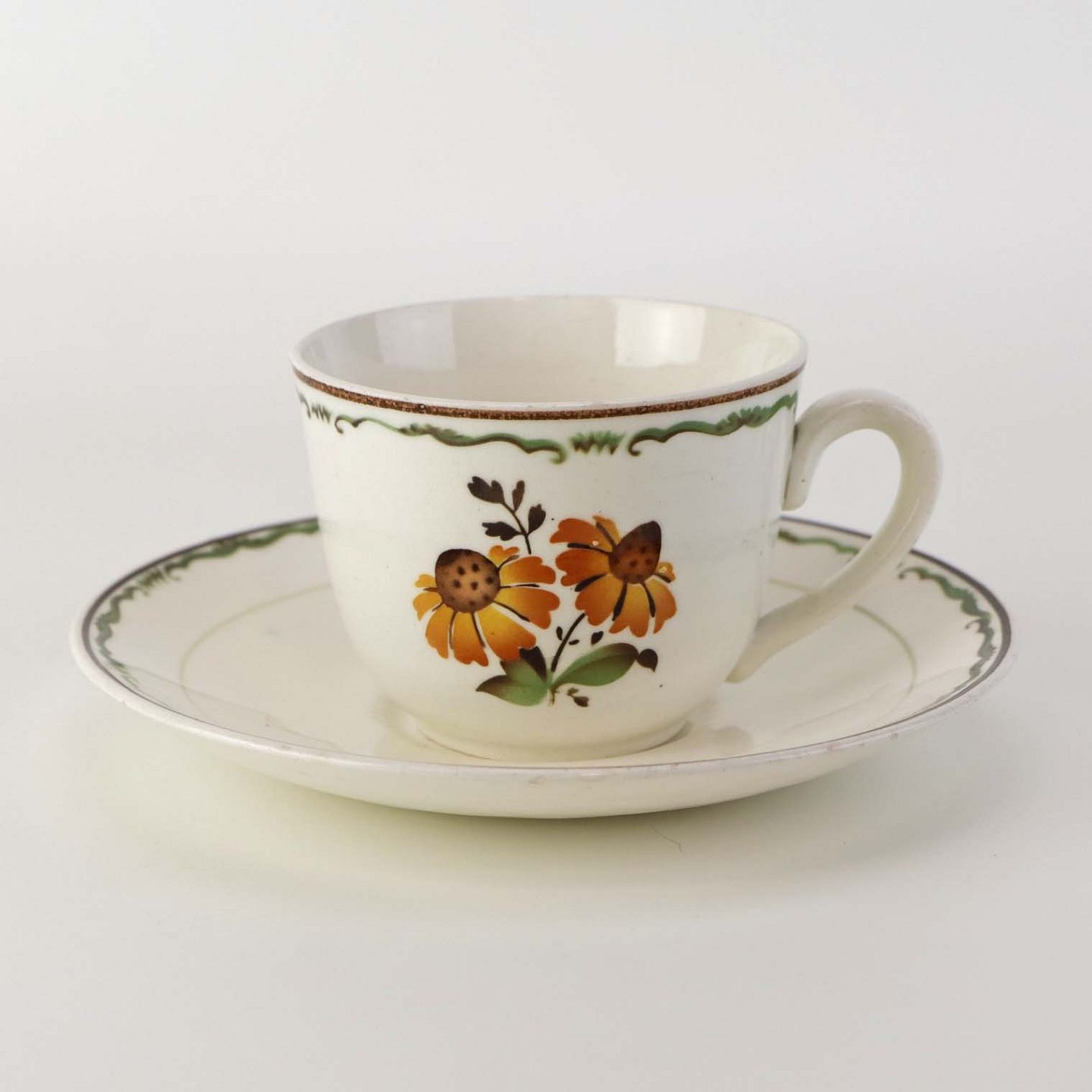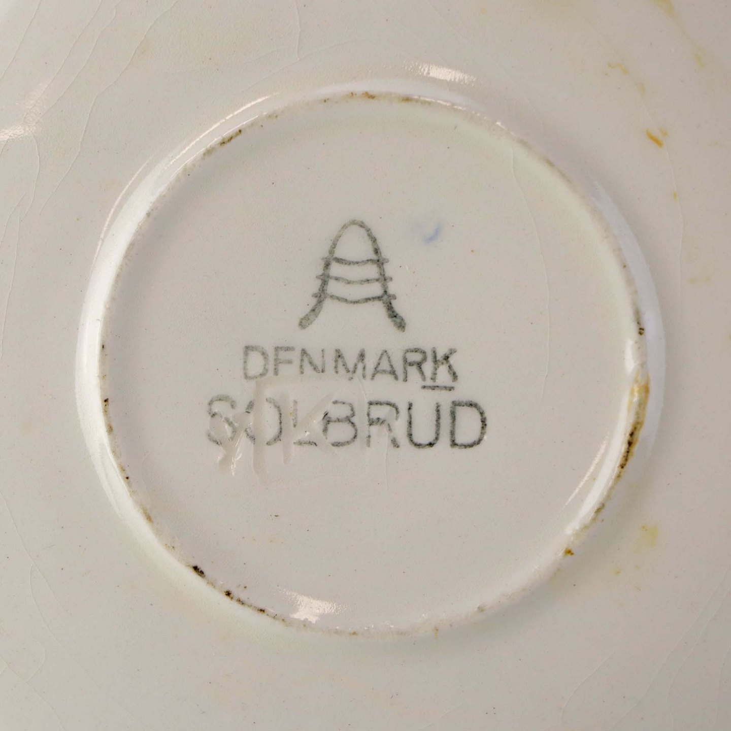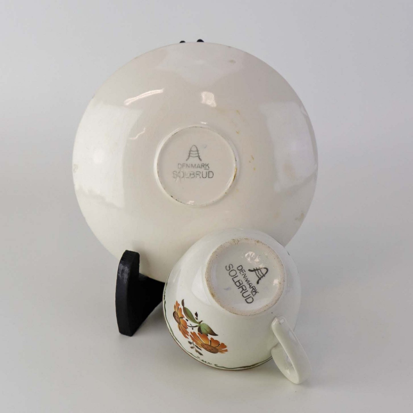 Text zugänglich auf Dänische: Kaffekop med underkop i fajance fra stellet Solbrud fremstillet i perioden 1937-1967. Nr. 2049