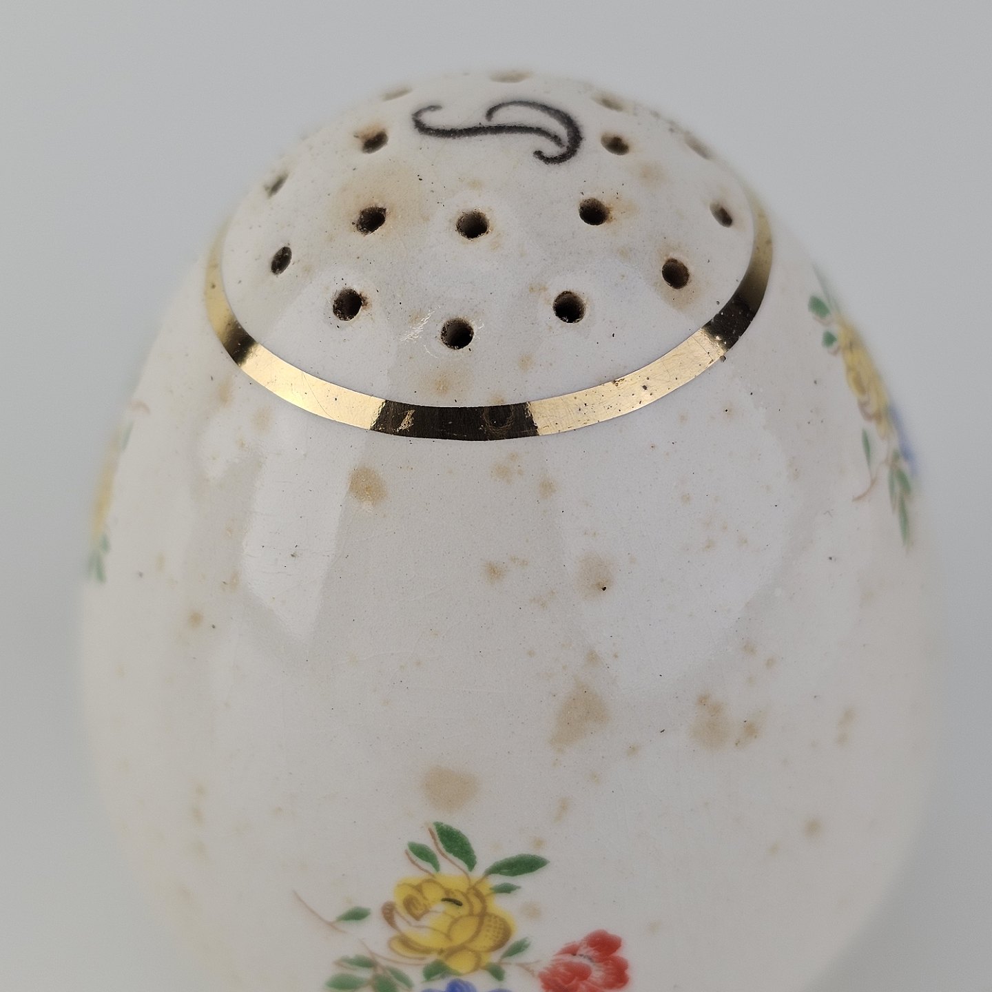 Fremstår med krakeleringer i overfladen og misfarvede pletter på peberbøssen