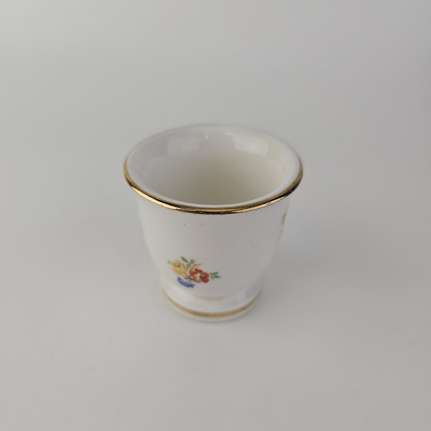 Anna Sofie er hvidt fajance dekoreret med guld kant og små farverige blomster