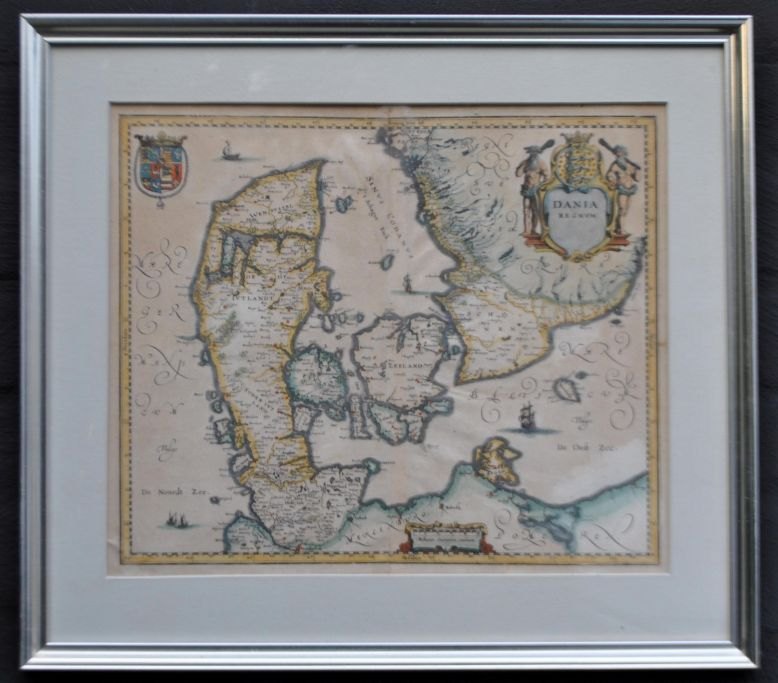 Willem Janszoon Blau (1571–1638), Niederlande: Übersichtskarte von Dänemark. 1634. Kupferstich, handkoloriert. Unsigniert. 28 × 33 cm.