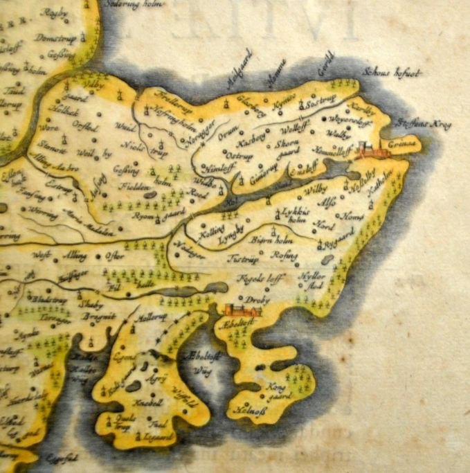 Frederik de Witt (17. Jahrhundert), Niederlande: Spezialkarte der Diözesen Ribe und Aarhus. Um 1660. Handkolorierter Kupferstich. Unsigniert. 44 x 58 cm. Lateinische Ausgabe.