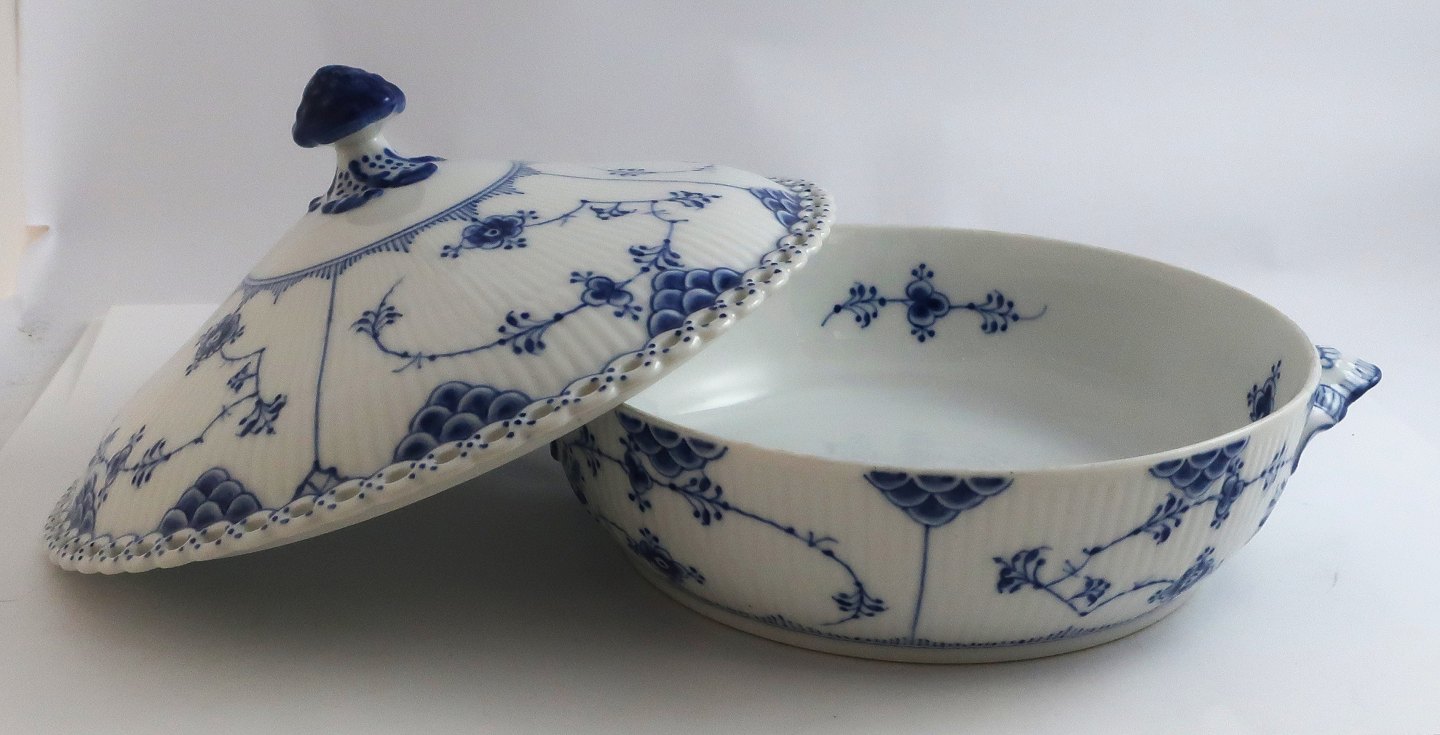 Royal Copenhagen. Musselmalet, Vollspitze. Deckelschale, rund. Modell 1128. Durchmesser 20 cm. (1 Wahl)