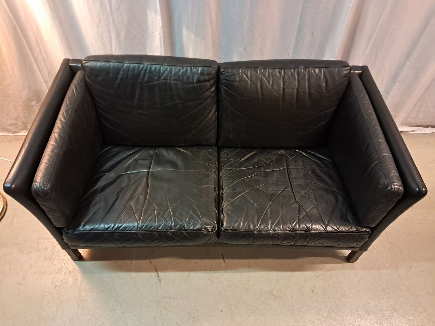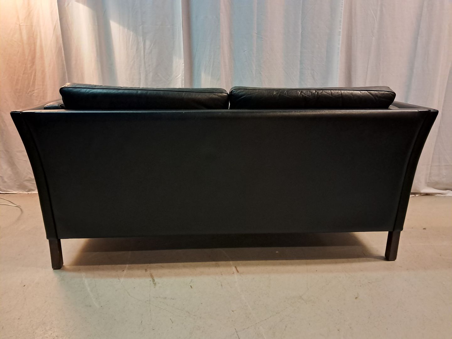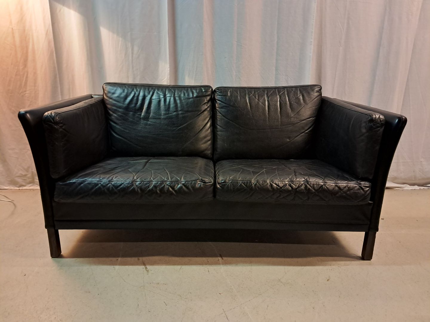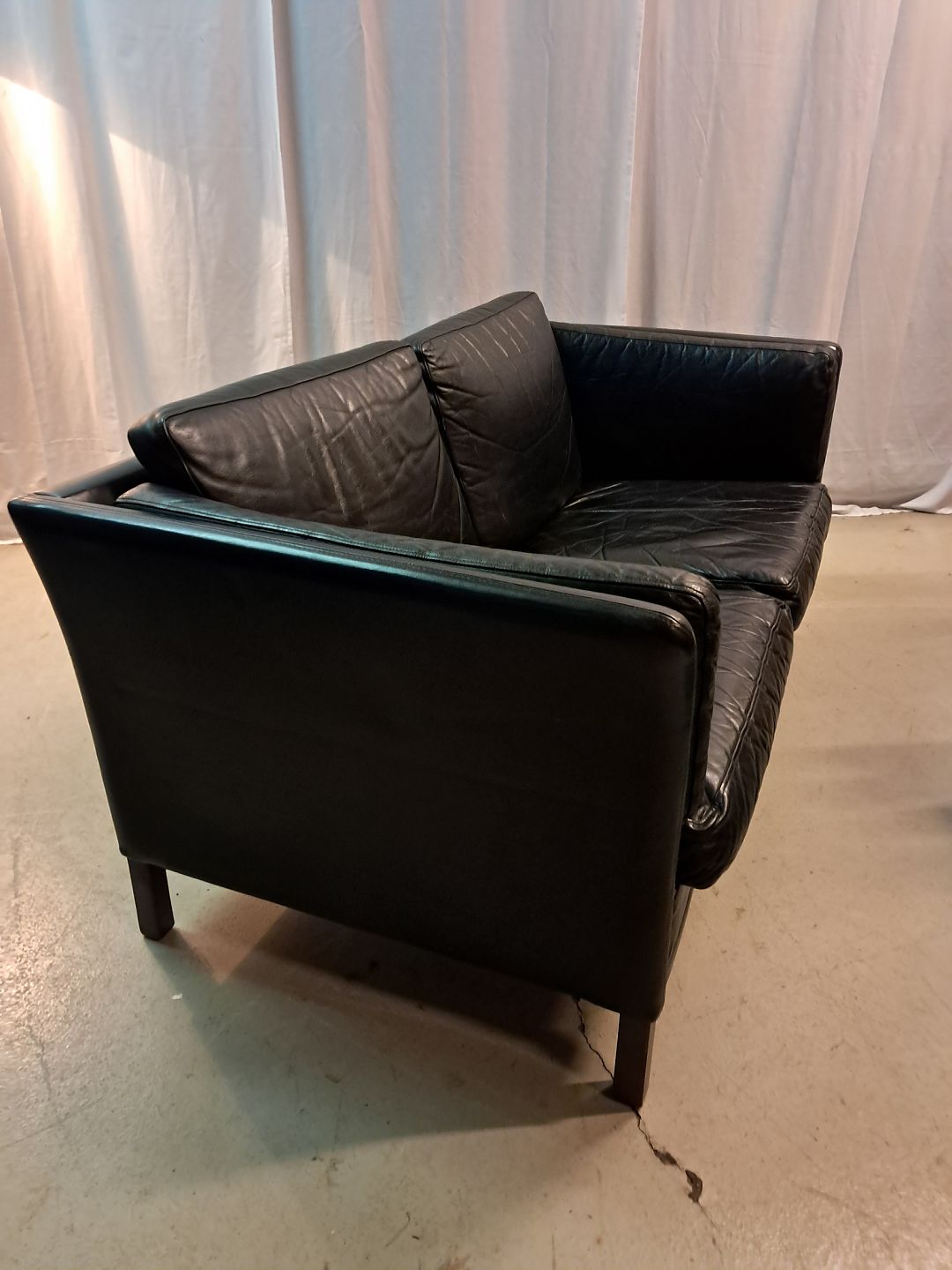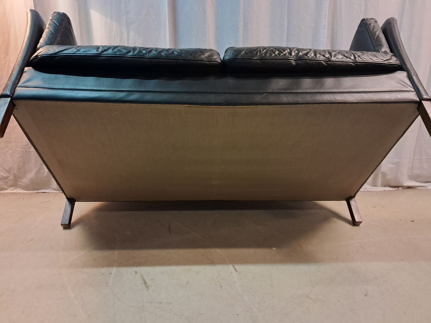 Sort lædersofa fra 1980erne.