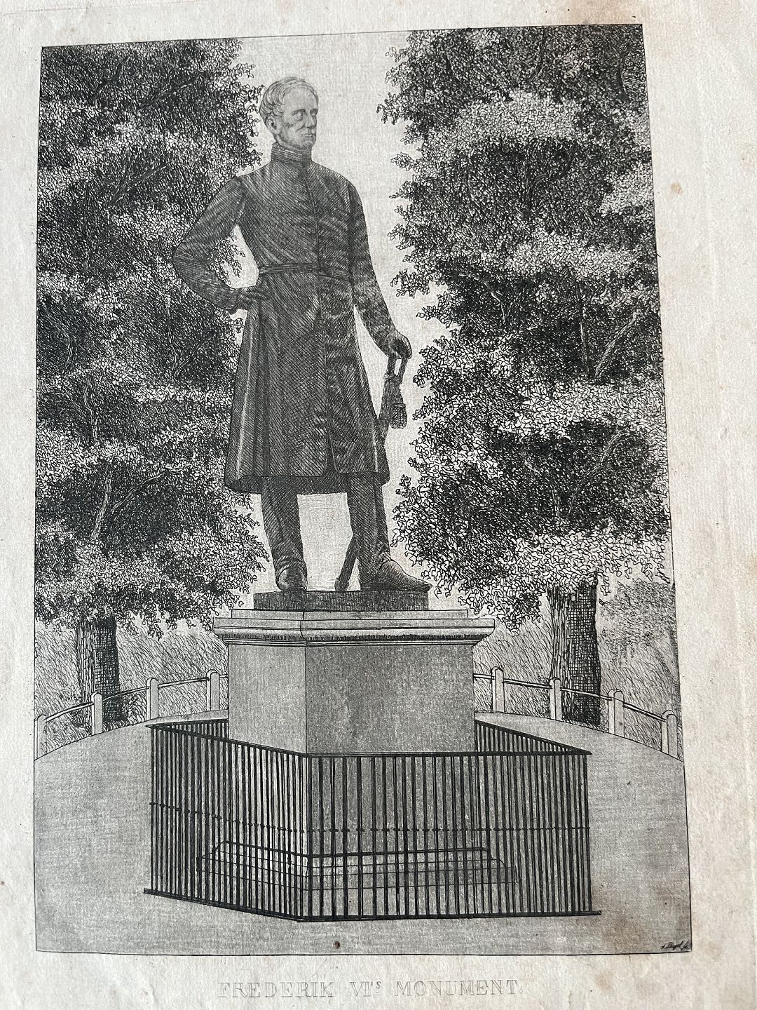 Radering af Adolph Pregel 1858 - Statue af MH Kong Frederik VI af Bissen.