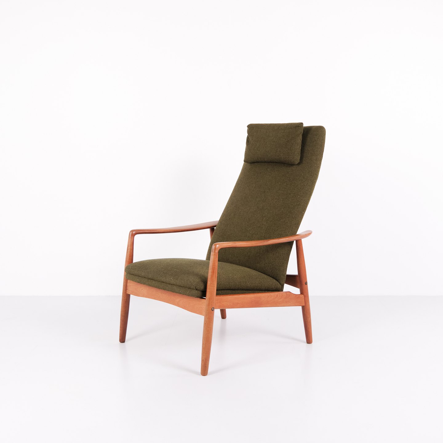 Ein Paar Lounge-Sessel mit Hocker – Teak – Grüner Stoff – Alf Svensson – Fritz Hansen – 1960er Jahre