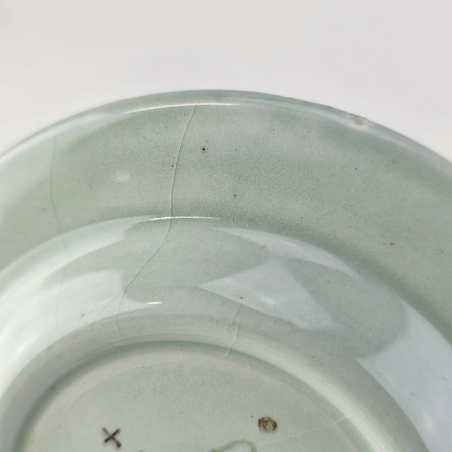Stel i lysegrøn fajance med natur dekoration og flettet kant
