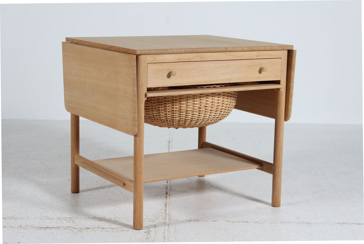 med skuffe og kurv til garnnøgler