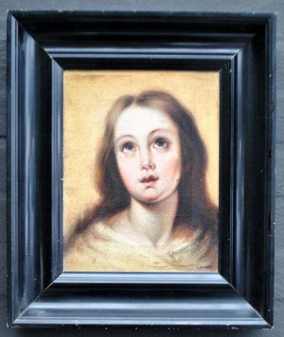 Kunt, S. (19. Jahrhundert): Das Gesicht einer Jungfrau. Öl auf Leinwand. Signiert. 27 x 20,5 cm.
