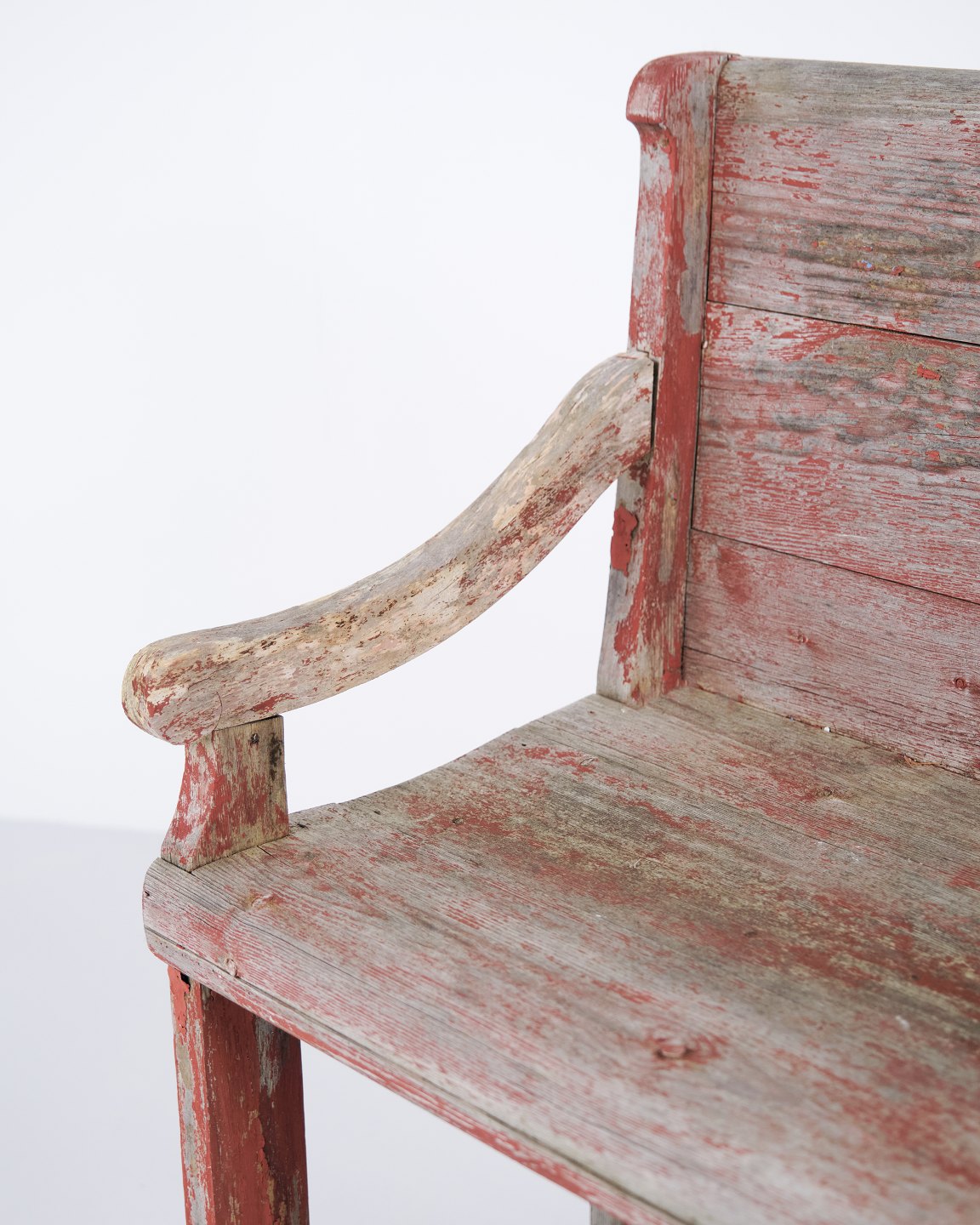 Antike Bank aus den 1860er Jahren aus original rot lackiertem Kiefernholz. Antike rot lackierte Bank aus dem 19. Jahrhundert.