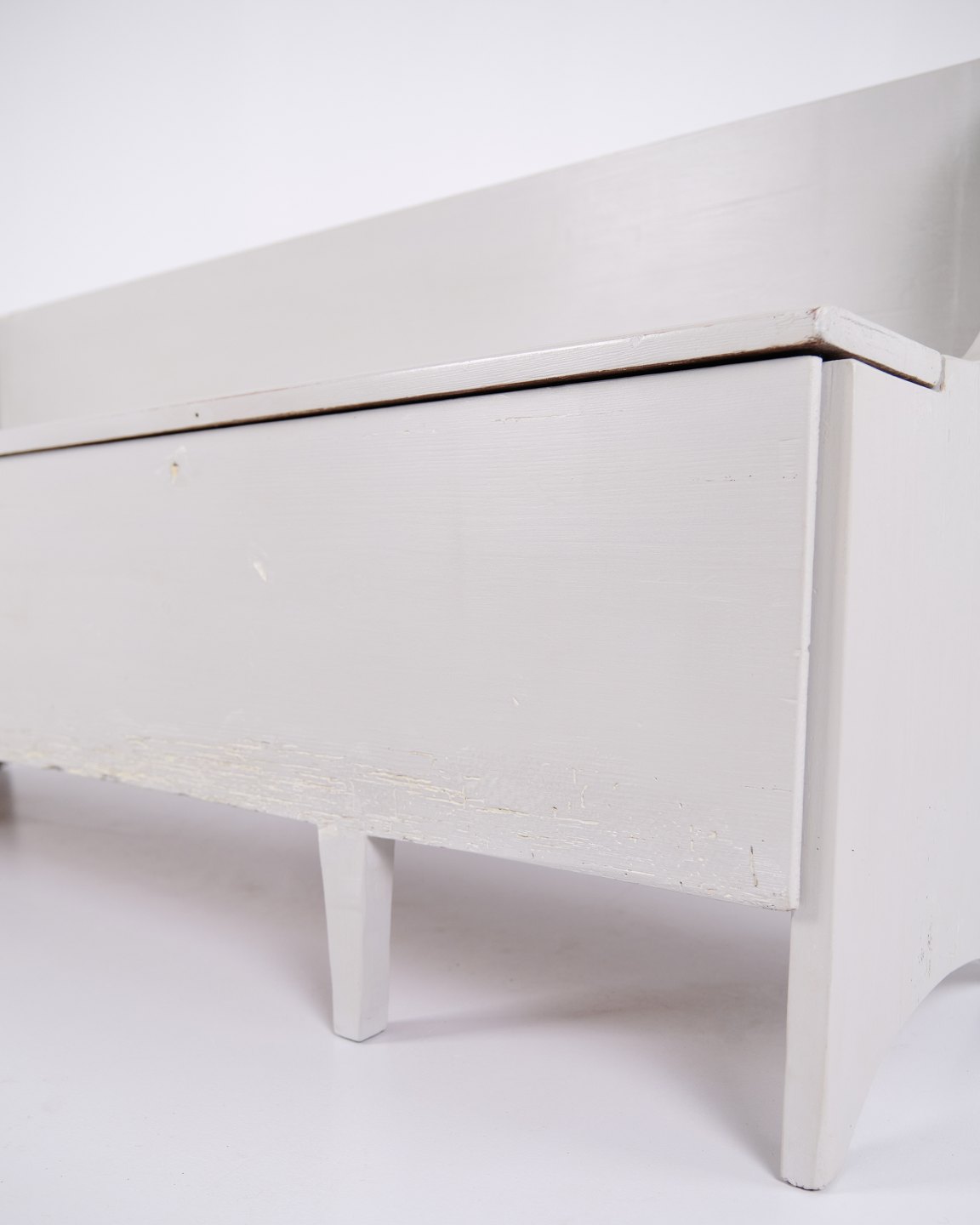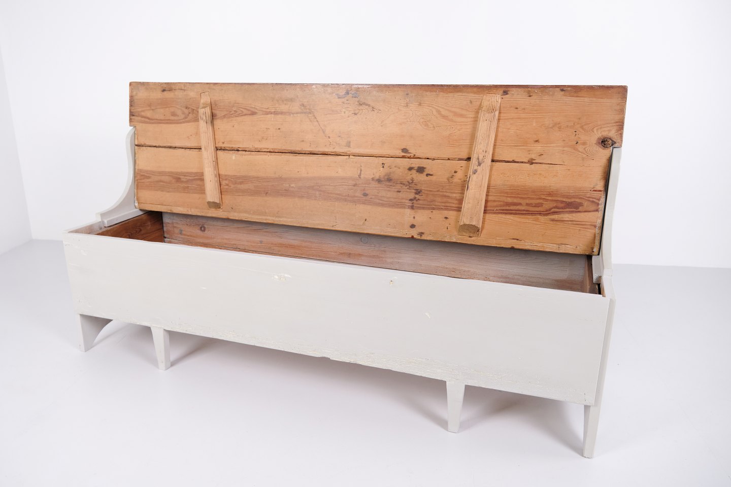 Antike Truhenbank – Grau Lackiert – Kiefernholz – 1890er Jahre