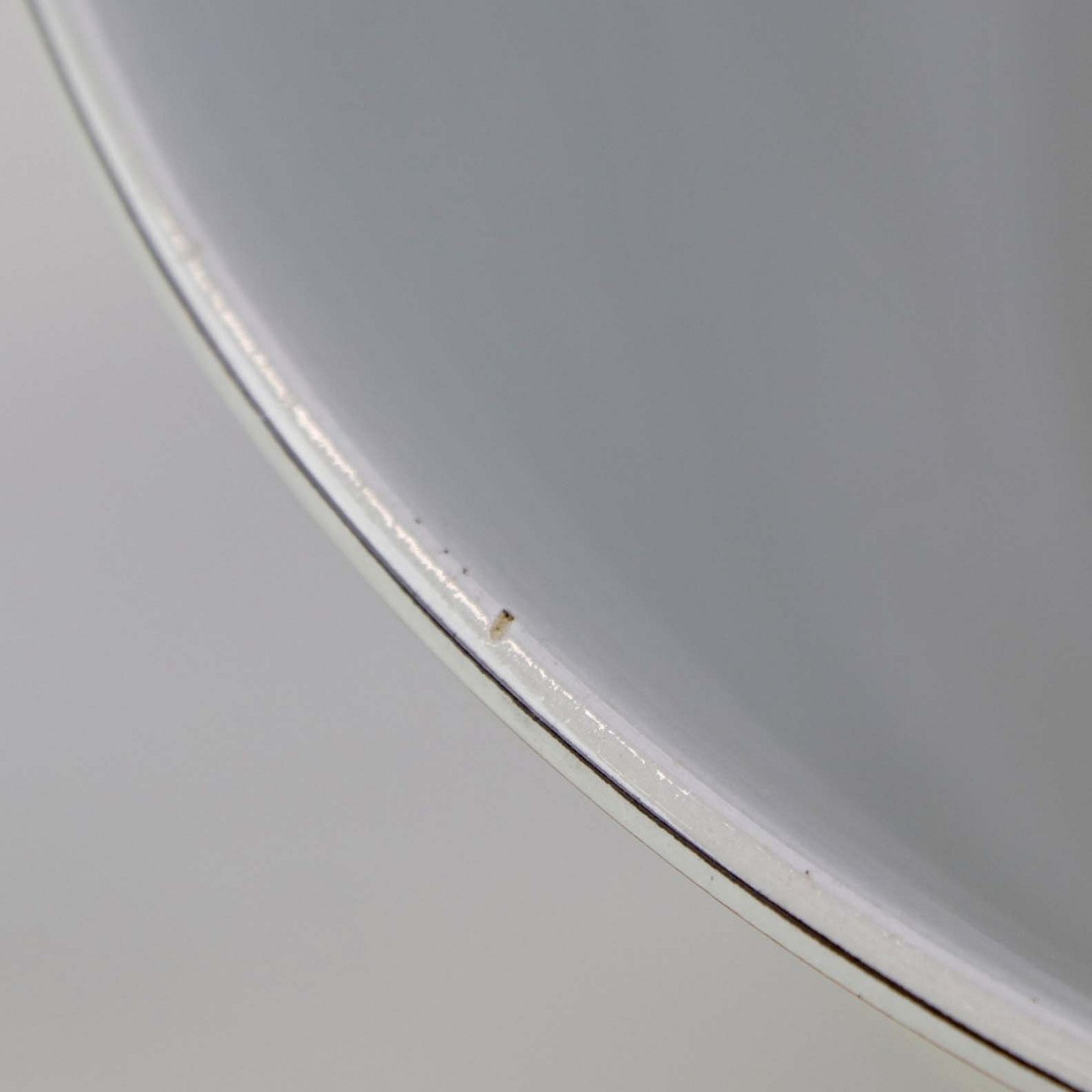 Fremstår med mindre mørkninger enkelte steder på glasuren på indvendig side samt mindre ujævnhed ved topkanten.