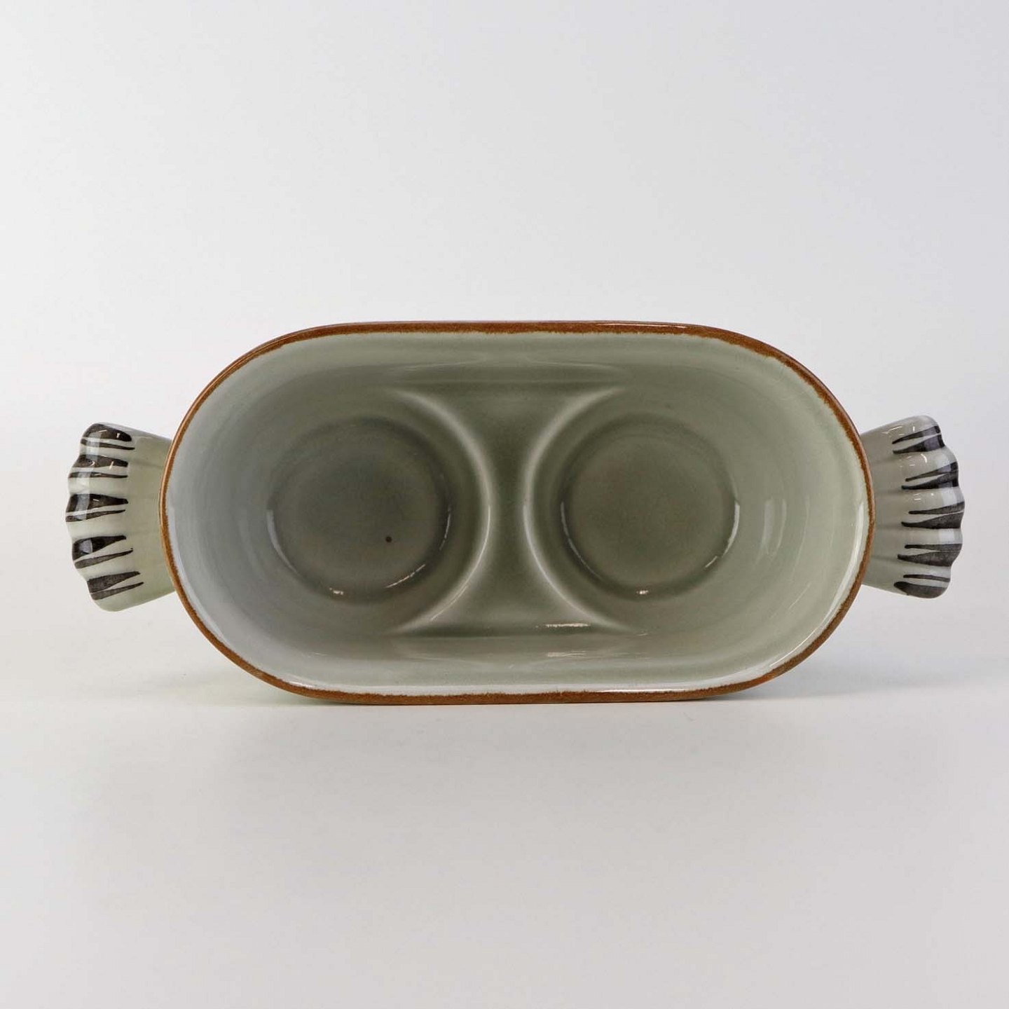 Text zugänglich auf Dänische: Sæt med to glasflasker til olie og eddike med prop i kar med hanke af fajance fra stellet Kirsten, som blev fremstillet i perioden 1934-1957.