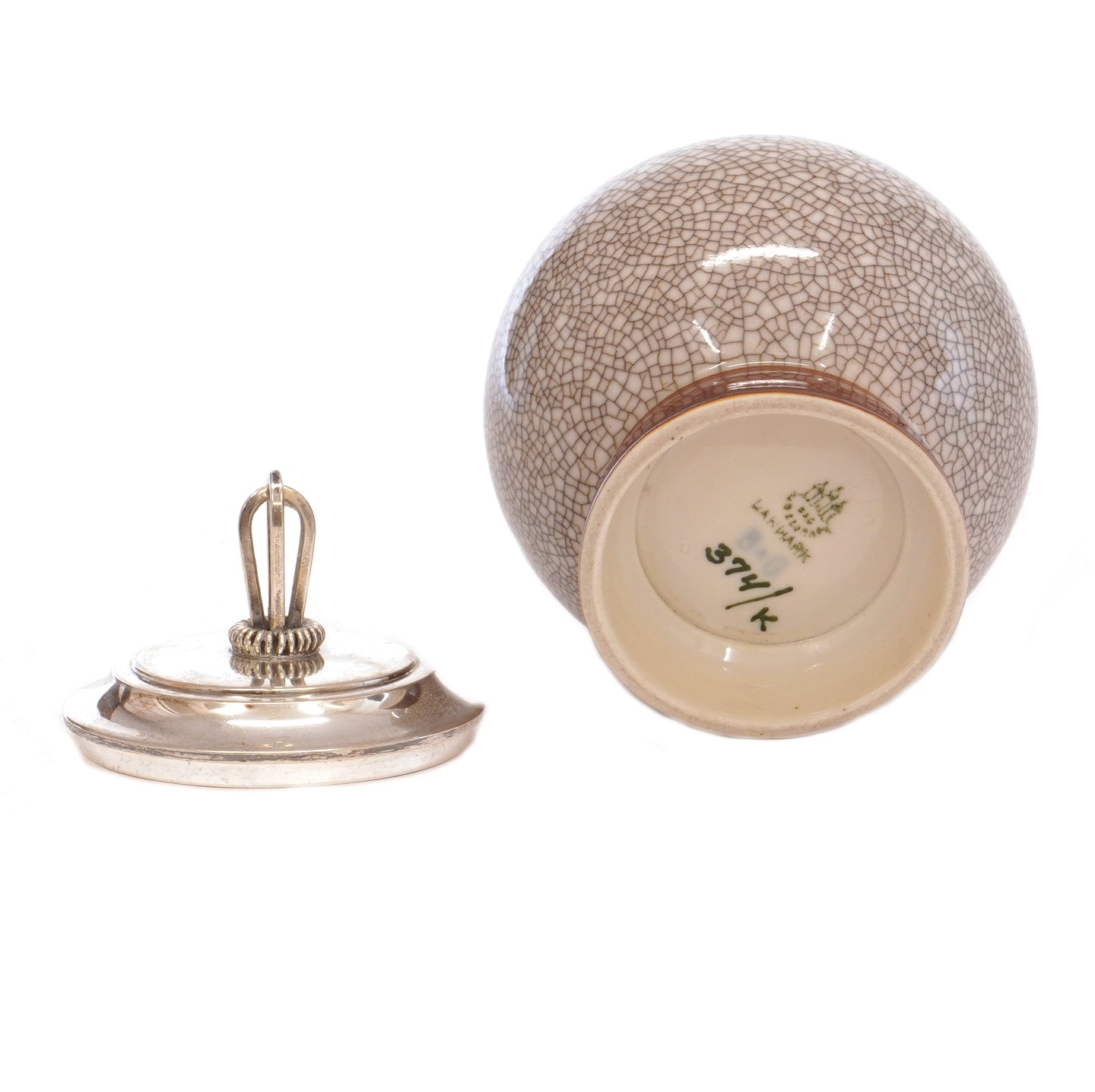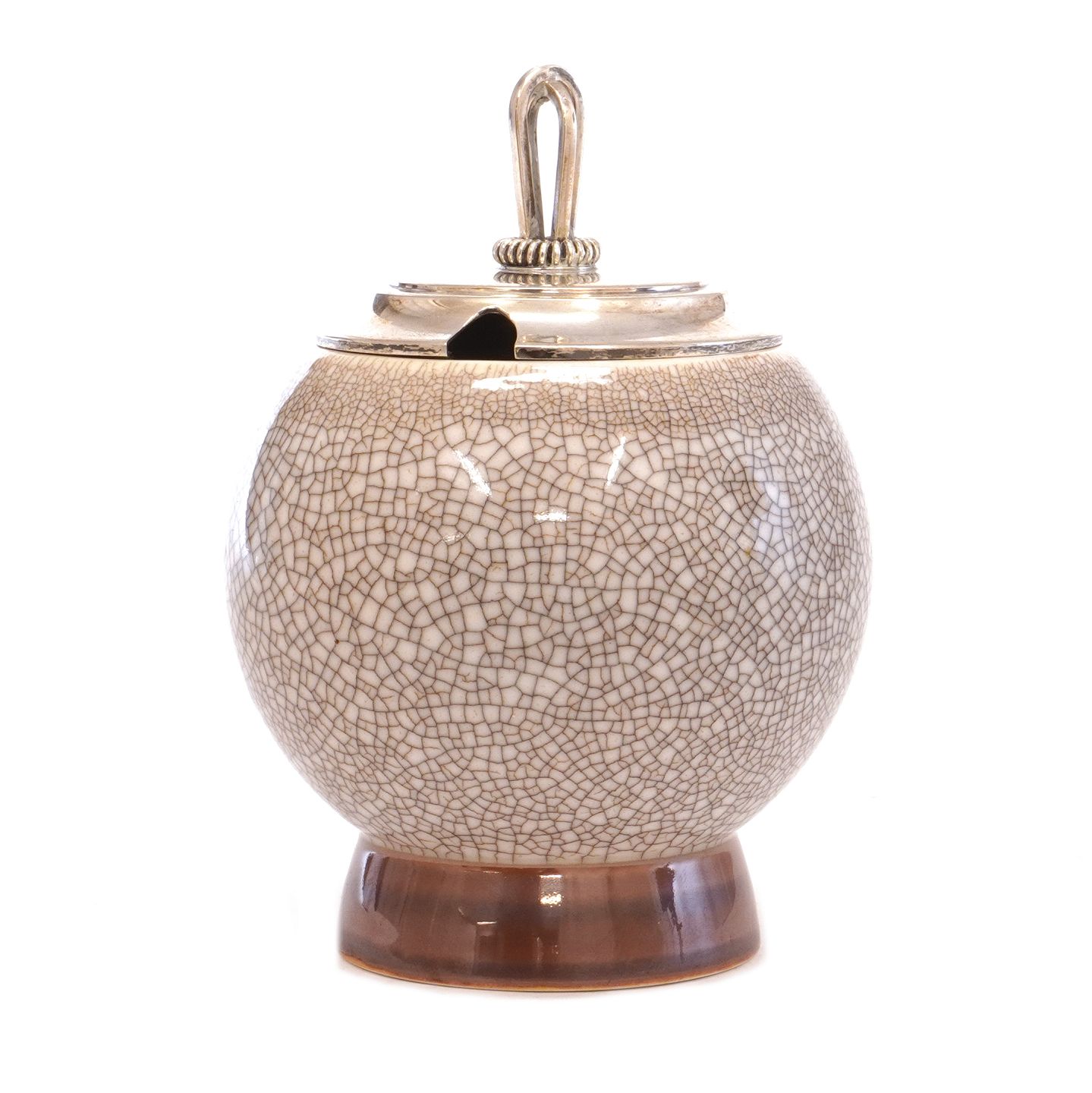 Konfitürentopf aus Porzellan von Bing & Grøndahl, Kopenhagen. Silberdeckel von Hugo Grün, Kopenhagen, 1949