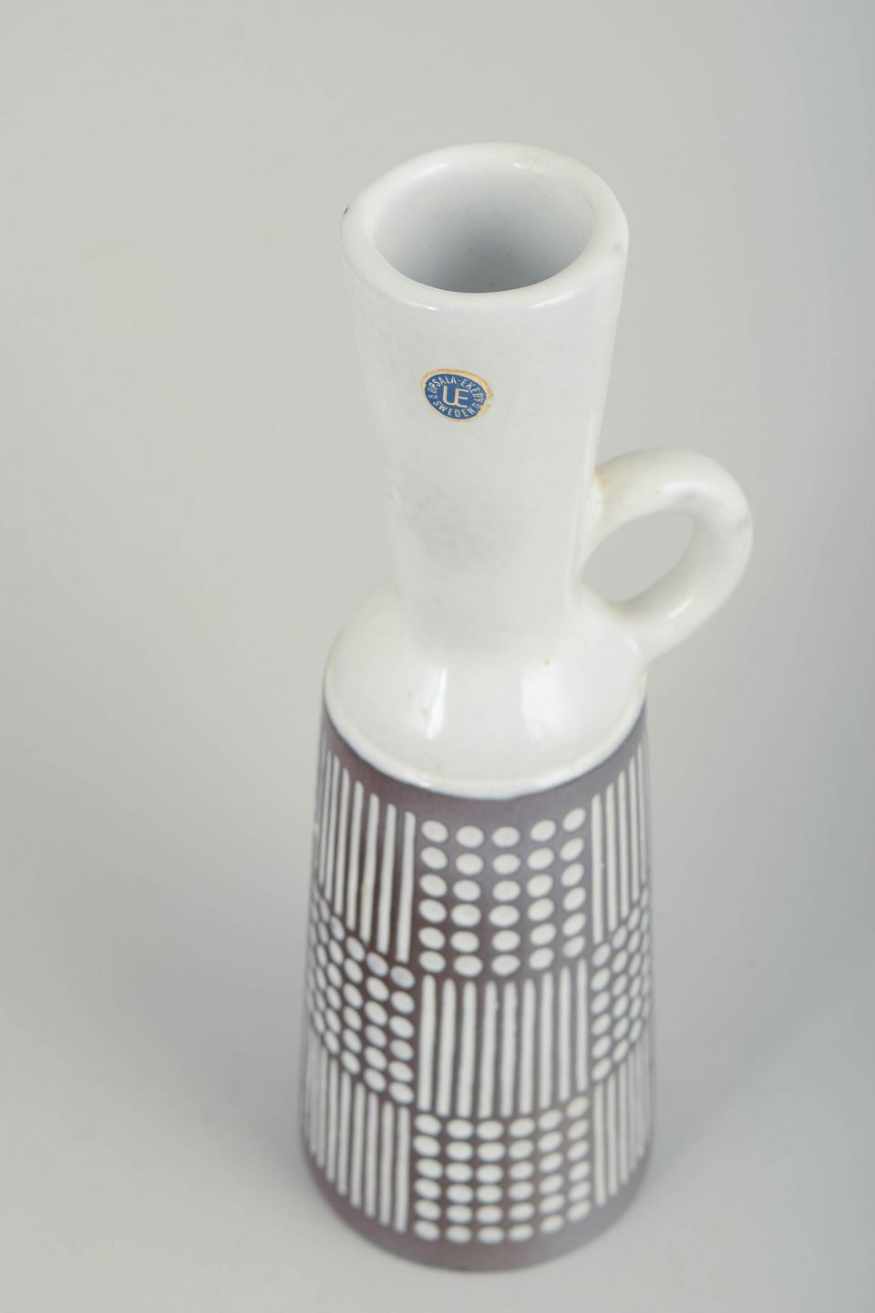 Mari Simmulson (1911–2000) var en svensk keramiker og designer, der i mange år var tilknyttet Upsala Ekeby. Hun er kendt for sine markante, grafisk dekorerede former, hvor gentagelse, rytme og kontrast spiller en central rolle. Hendes arbejder fra 1950’erne og 60’erne afspejler den skandinaviske modernismes fokus på klar form, funktion og dekorativ stringens. Upsala Ekeby var i perioden blandt Sveriges førende keramikproducenter, og værker herfra er i dag højt værdsat blandt samlere.