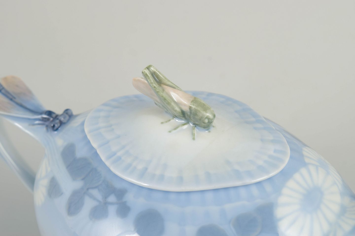 Elegant tekande i porcelæn fra serien Skærsommernatsdrøm, model 73/10036. Formen er blødt svungen med integreret tud og hank, og låget er forsynet med et naturalistisk knopgreb.