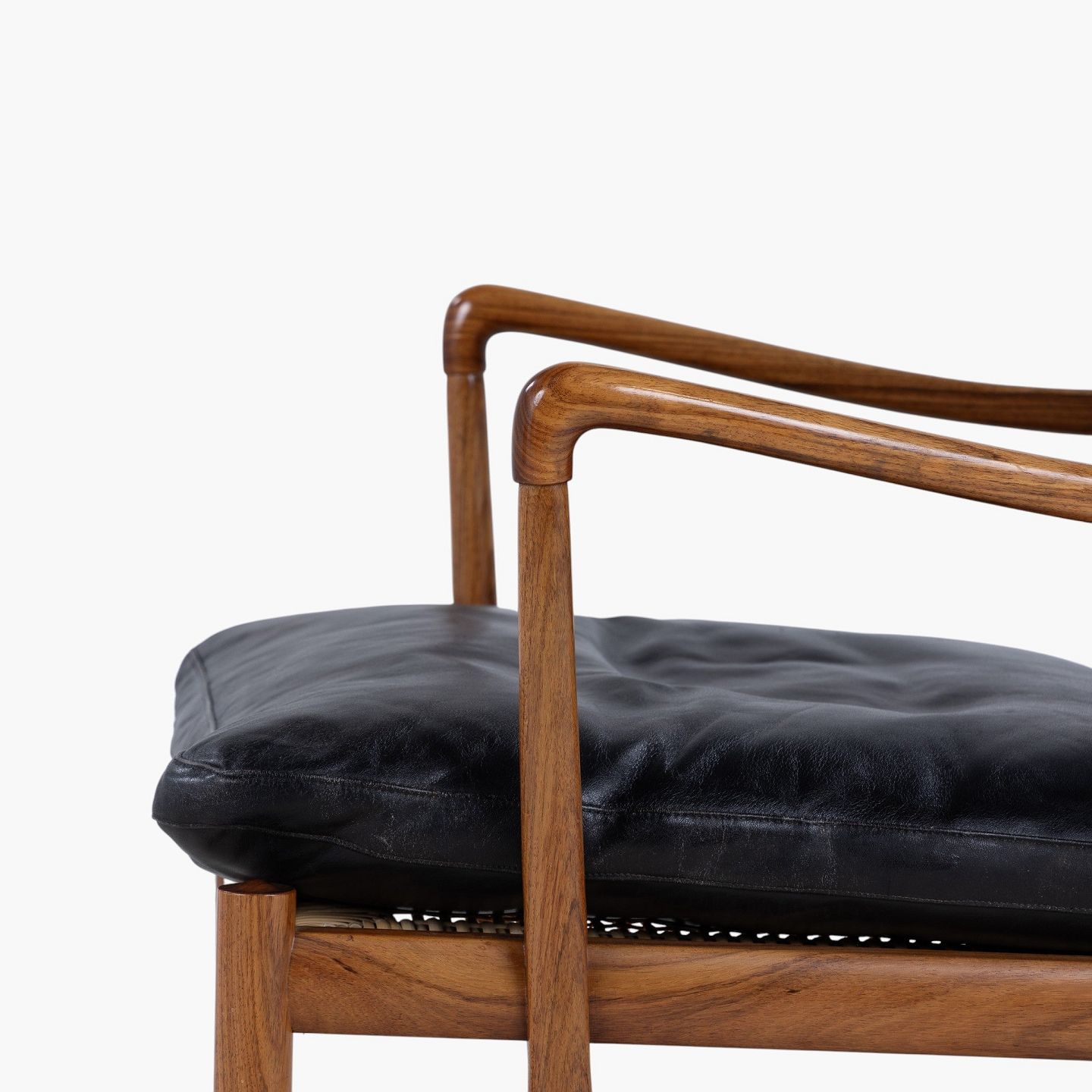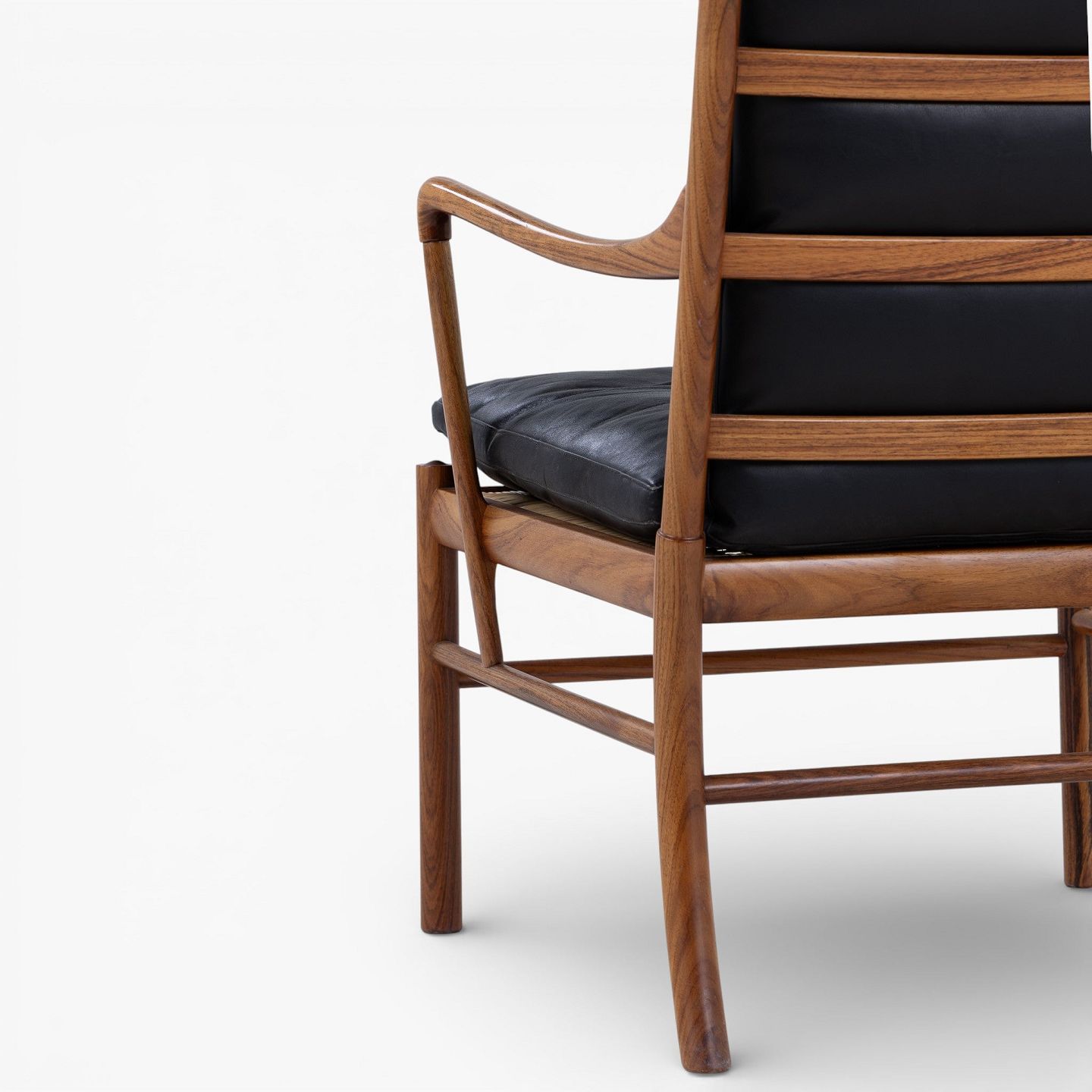 PJ 149 - 'Colonial Chair'-lænestol i palisander med hynder i patineret, sort læder. Mærket fra producent.