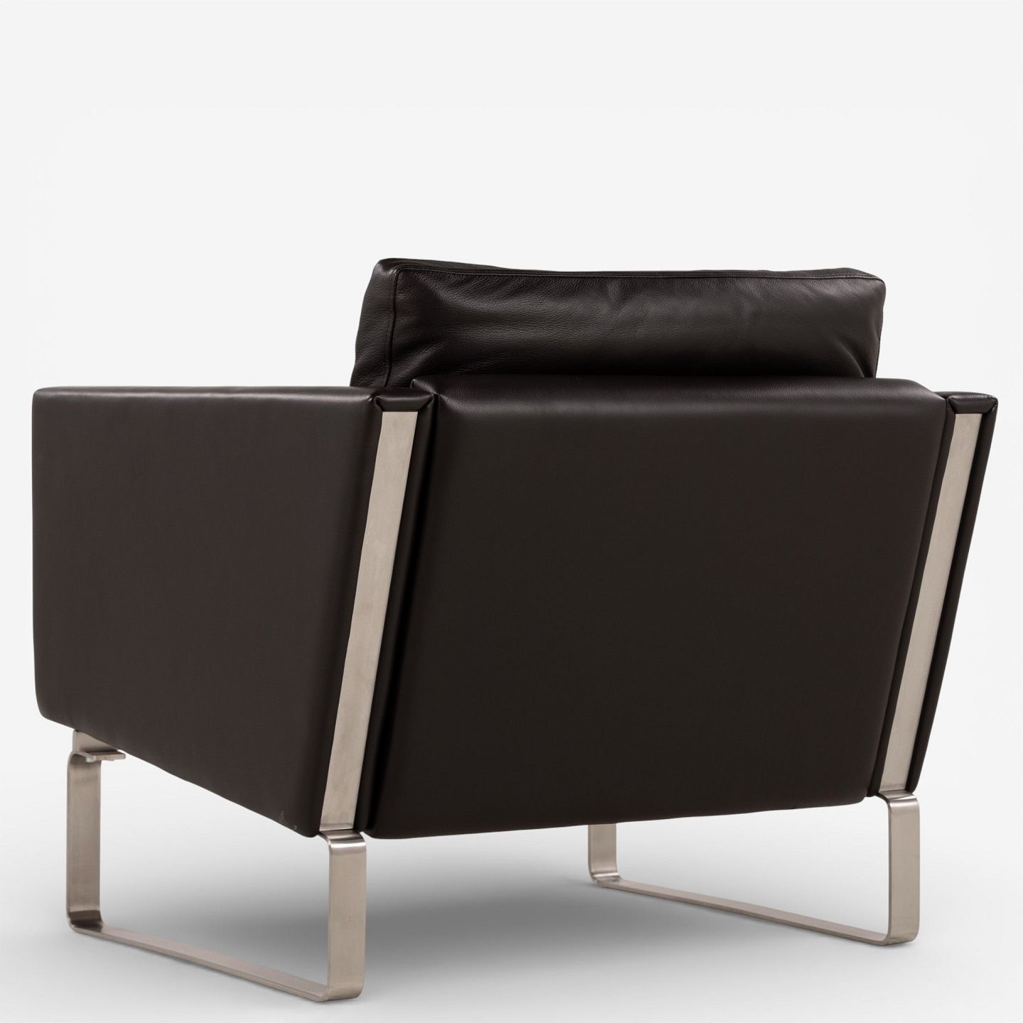 CH 101 - Lænestol i mørkebrunt, patineret semi-anilinlæder med stel i stål. Mærket fra producent.