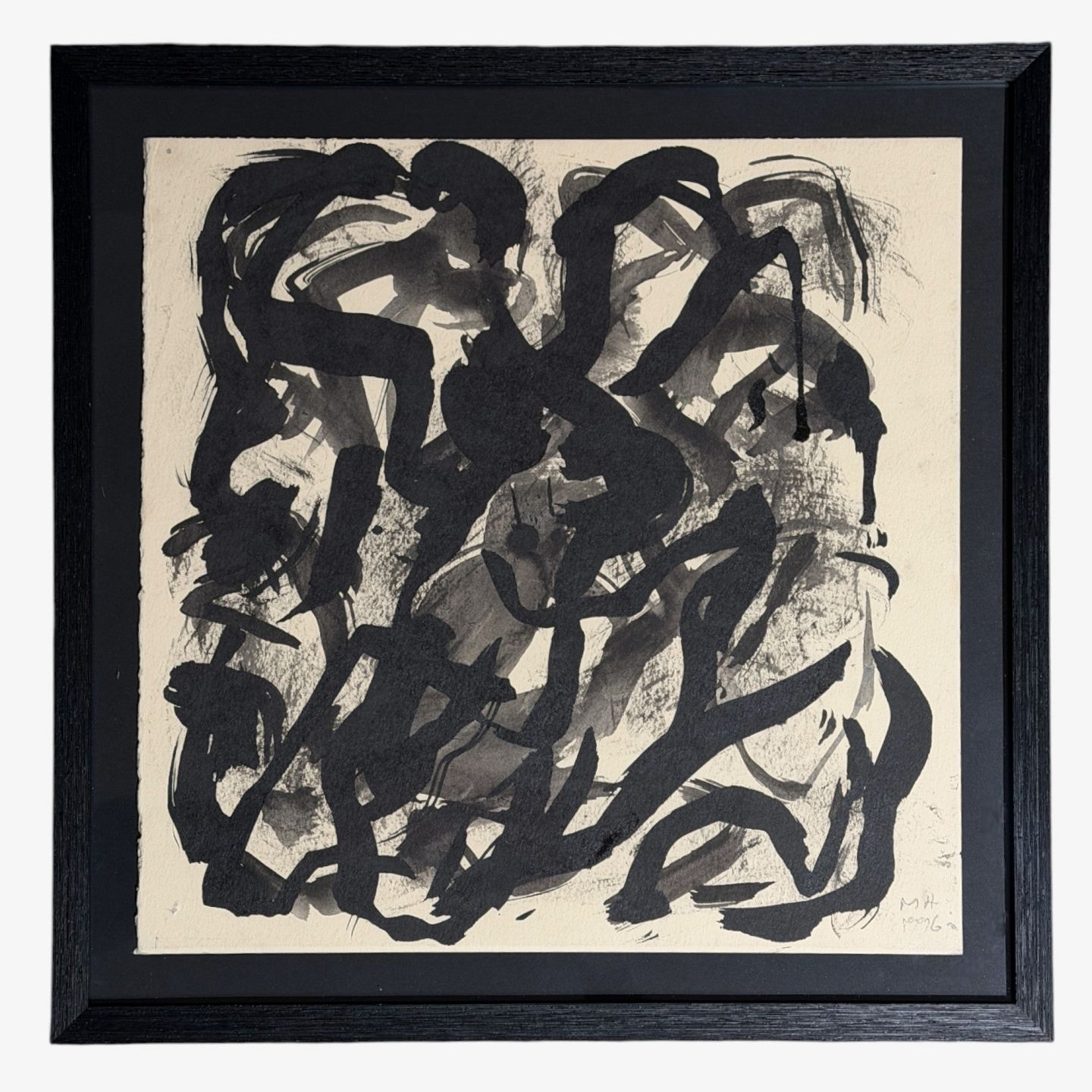 Gouache på papir i sort kvadratisk ramme. Signeret. 1996.