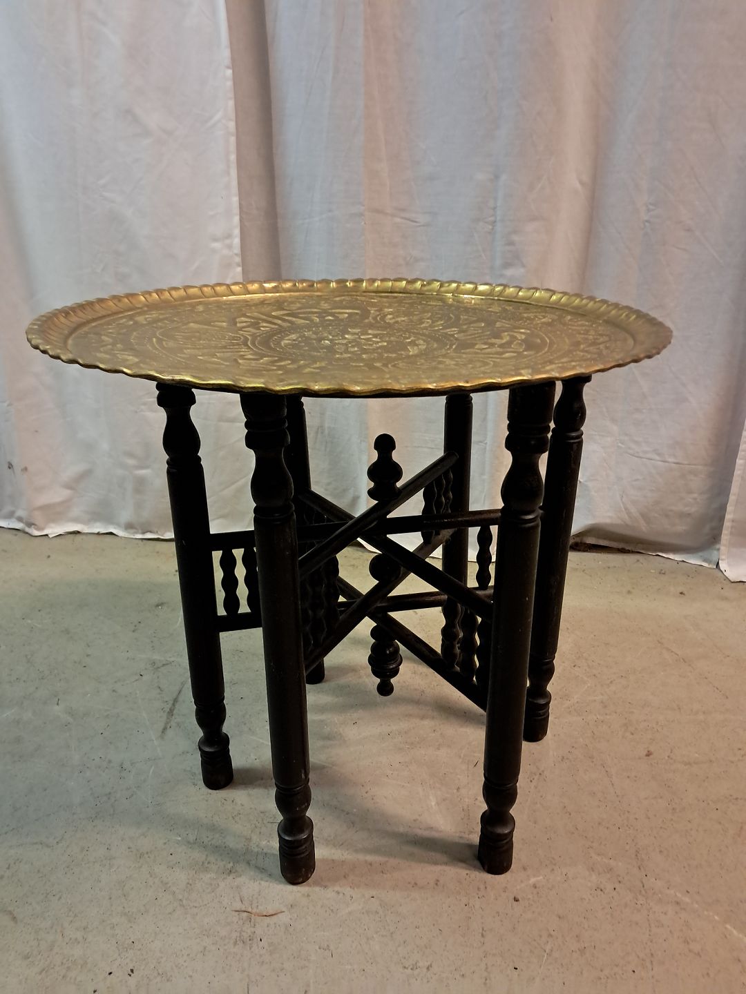 Pyntebord i massivt træ med messingplade, fra 1980erne.