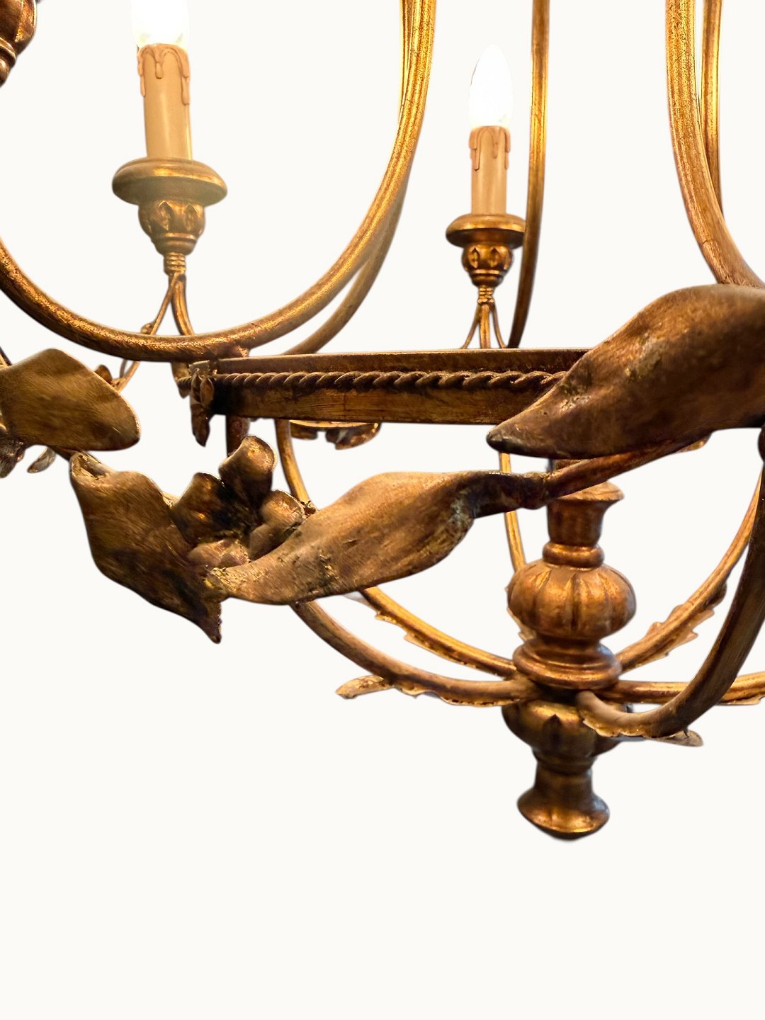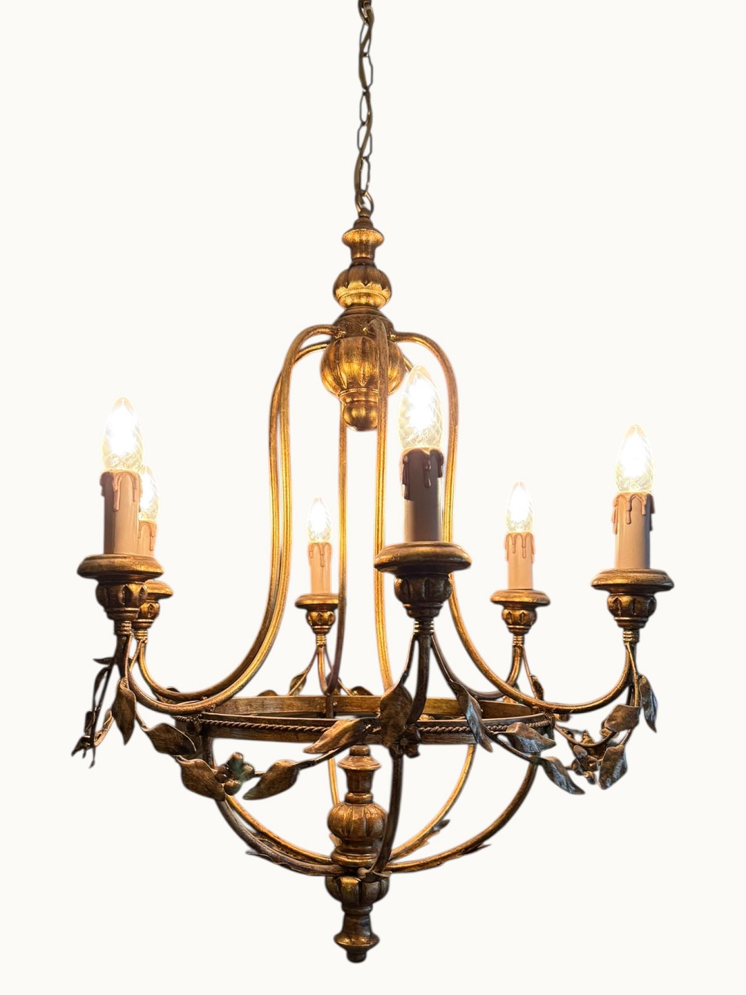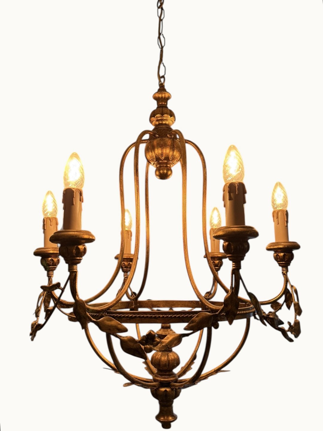 Käfigförmiger Kronleuchter aus Metall und Holz im Stil Louis XVI., Durchmesser ca. 60 cm, elektrisch betrieben, *guter und funktionsfähiger Zustand*