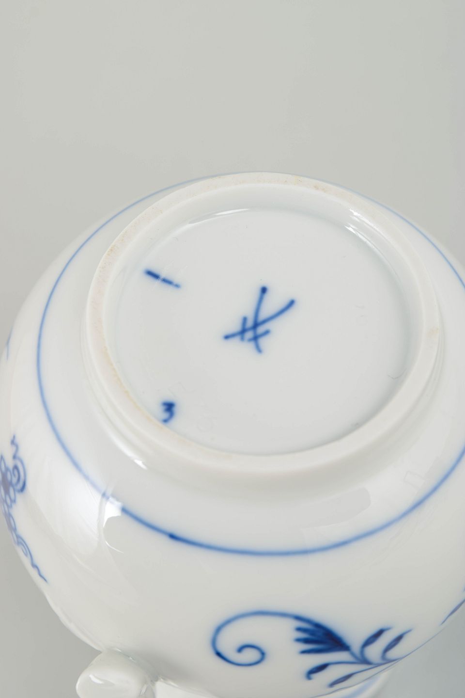 Text zugänglich auf Dänische: Meissen, Blå Løg flødekande.