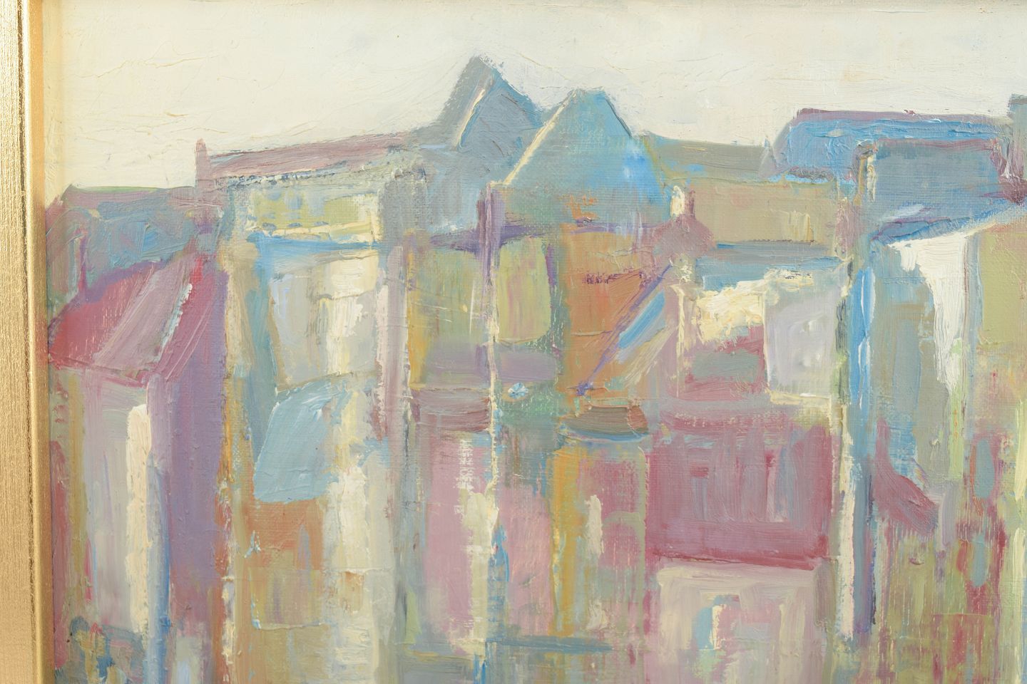 Dansk modernistisk maleri fra 1960’erne og 70’erne var ofte præget af stiliserede by- og landskabsmotiver, hvor perspektiv og arkitektur blev forenklet til flader og rytmiske former. Farvefelter og lysvirkning anvendes til at skabe stemning frem for naturalistisk gengivelse, hvilket giver værkerne et poetisk og tidstypisk udtryk.