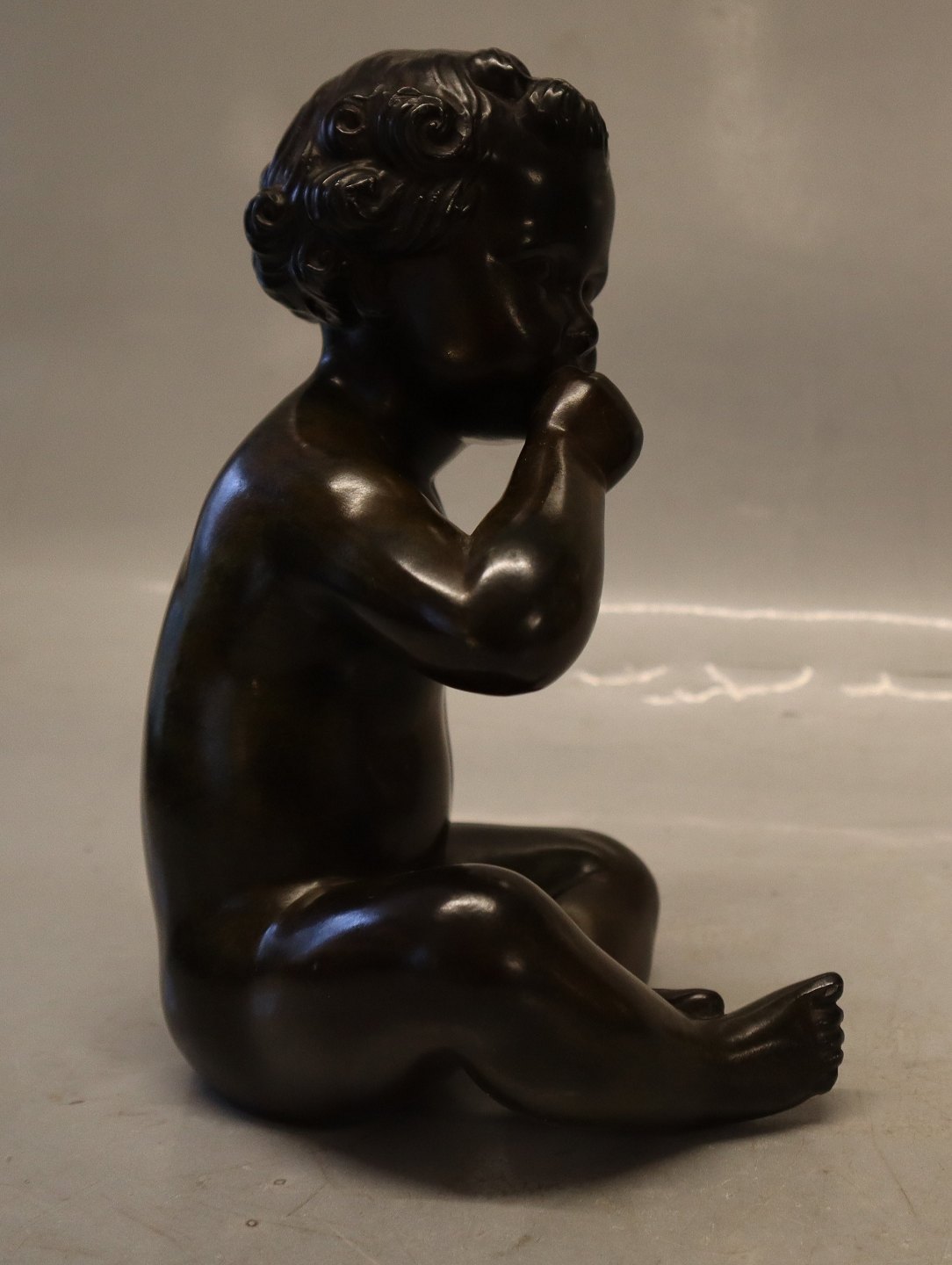 Just A Disko D 2323 Dreng sider og sutter på sin tommelfinger 19.5 cm Bronzeret statuette
