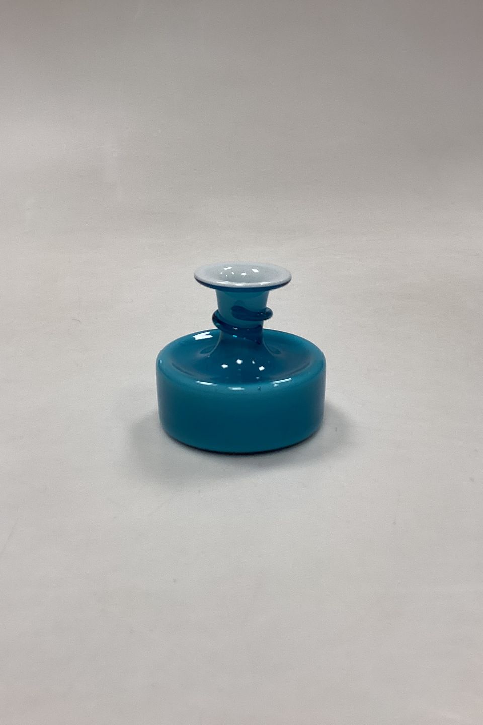 Holmegaard Palet Glaslysestage. Designet af Michael Bang. Farve: Turkisblå og hvid indvendig. Brugsspor i bunden og lille boble på kanten, se foto.