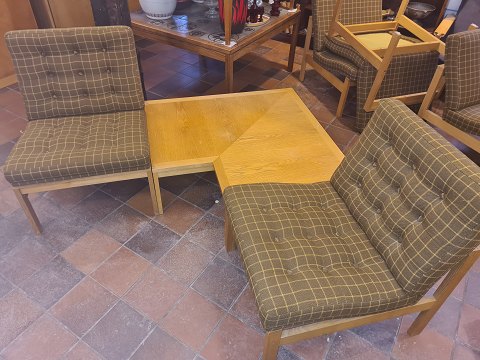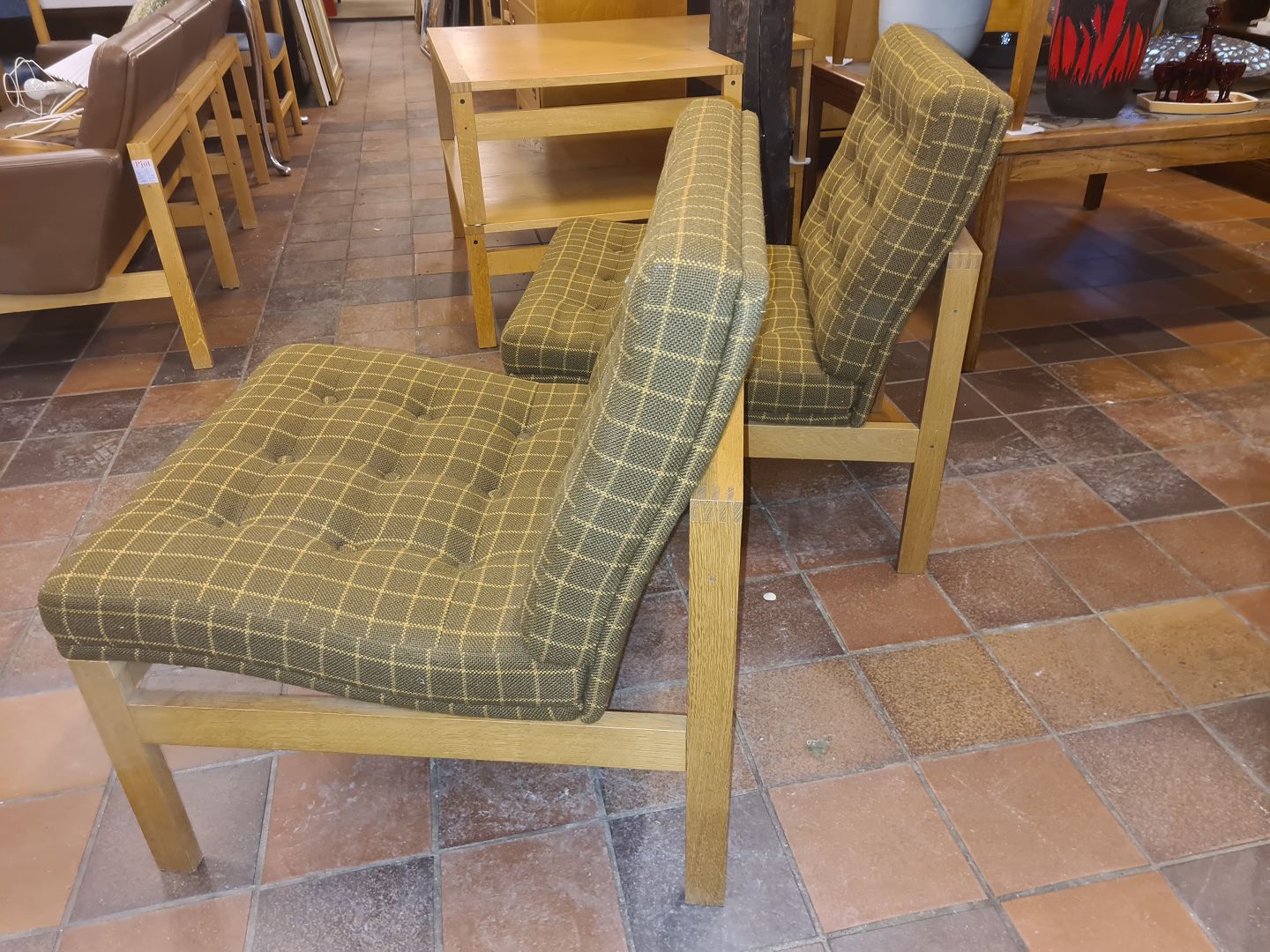 Text zugänglich auf Dänische: Ole Gjerløv Knudsen/ Torben Lind et par Moduline lounge stole udført i eg og betrukket med dybhæftet uldstof. Fremstillet hos France & Søn ca. 1970'erne.