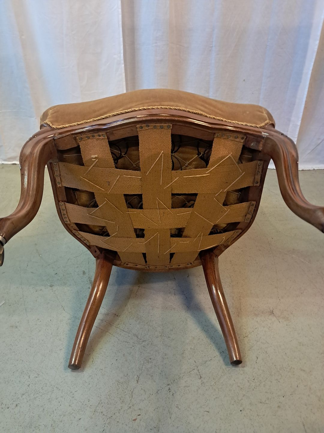 Lænestol i mahogni med velour betræk, fra 1900erne.